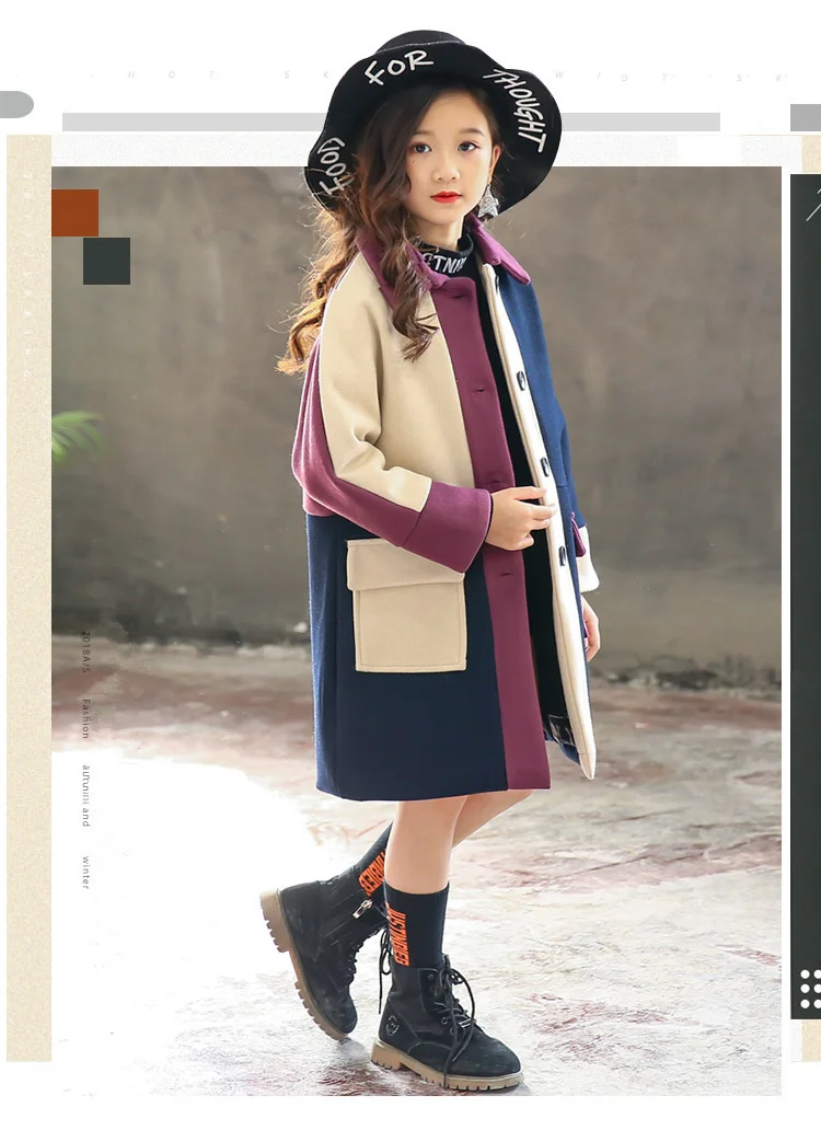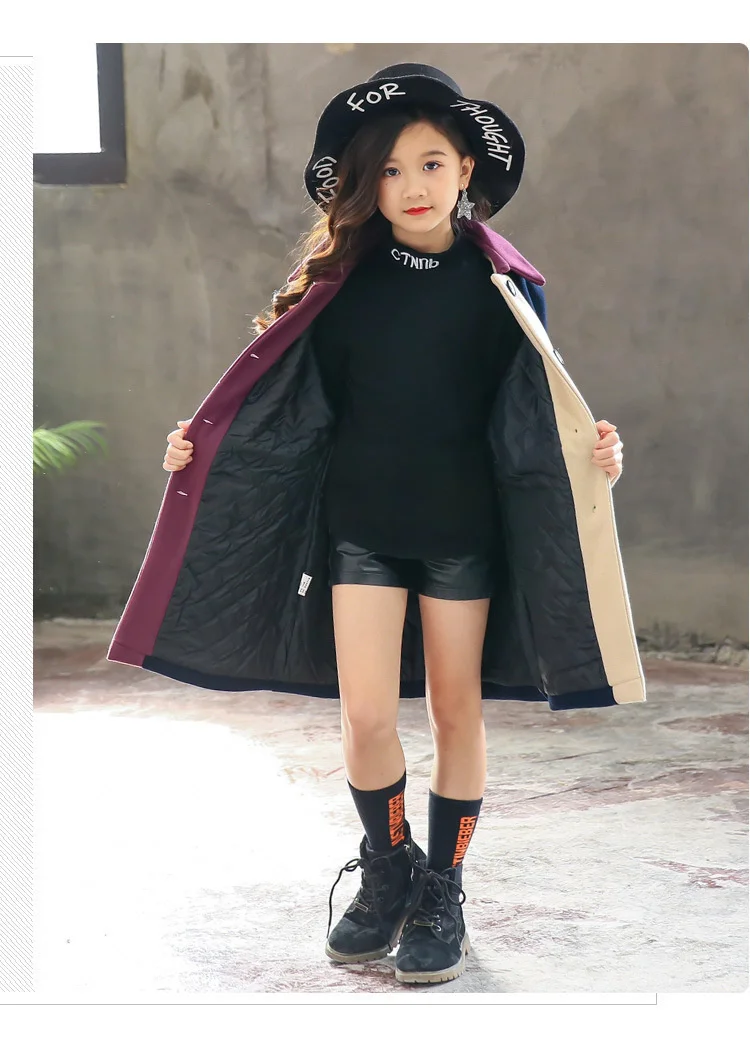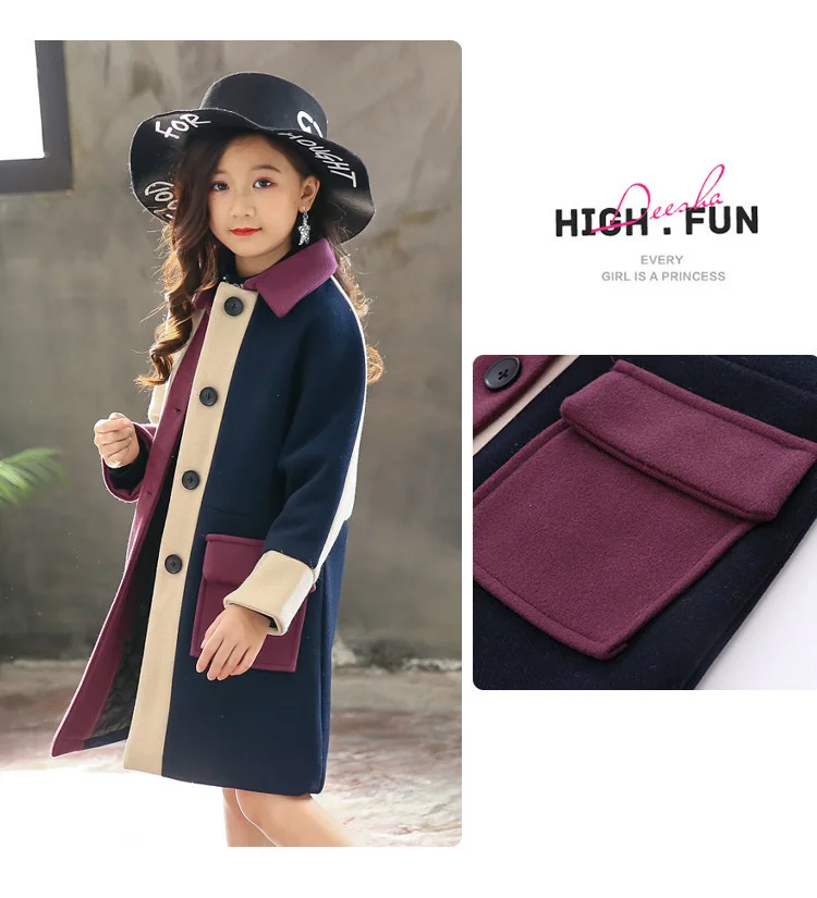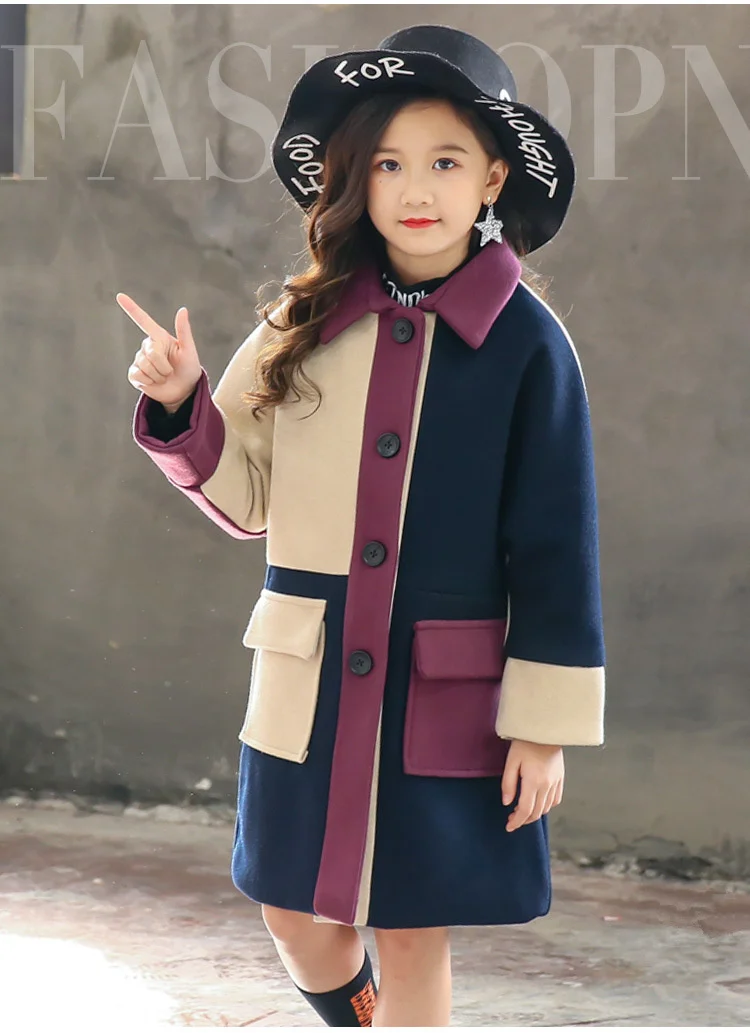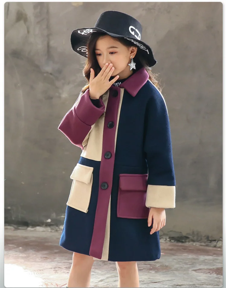 Новинка 2021, зимняя детская одежда, шерстяная ветровка, верхняя одежда, пальто для девочек, куртка, теплая куртка в стиле пэчворк, Детская шерстяная и смешанная одежда