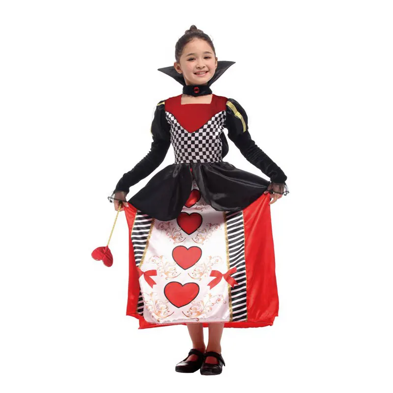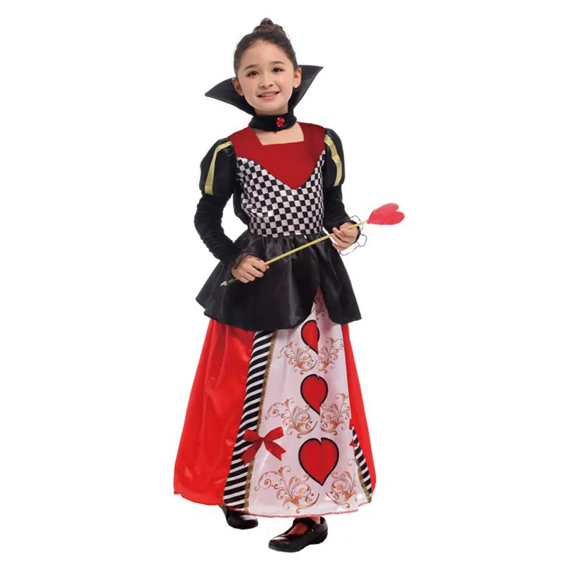 Детские Роскошные красные костюмы королевы сердец для девочек на Хэллоуин Пурим карнавал Рождество новогодние праздничные нарядные платья
