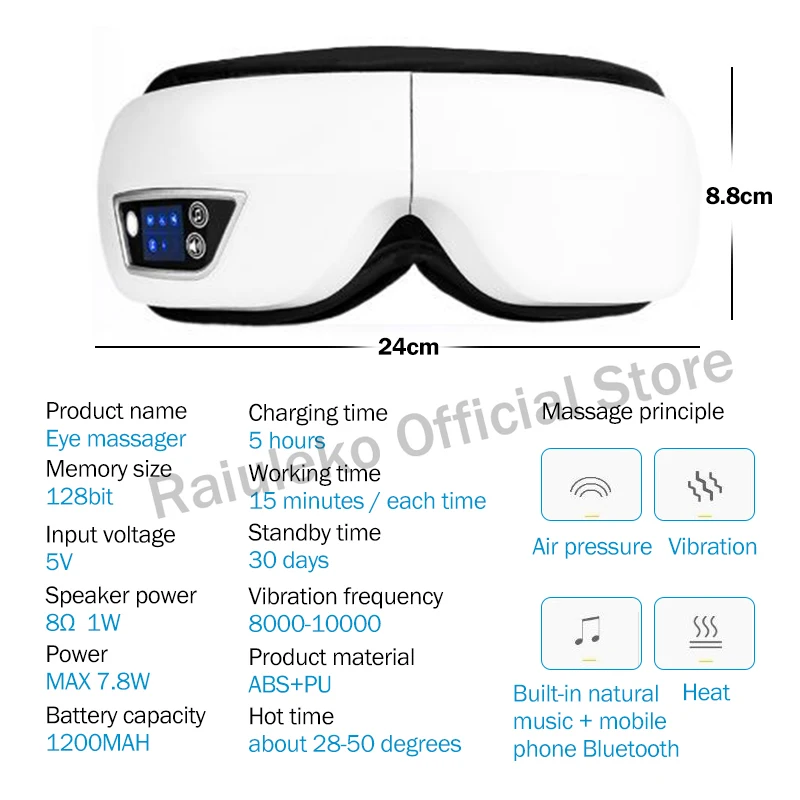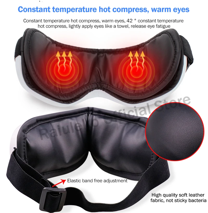 Принцип действия: в медицинской книге записано много точек акупунктуры вокруг глаз человека. Когда глаза часто протираются/мигают/близорукость/у них головокружение, глаза слишком устали, и кожу можно массировать вокруг глаз и висков должным образом. Достигайте эффекта дноуглубления и расслабляйте глаза. Массажер для глаз предназначен для имитации массажа «нажимайте-сжимайте-нажимайте» вокруг глаз и дужек, и добавьте горячий сжатие глаз, чтобы расслабить глаза и сотрудничать с музыкой Bluetooth, чтобы избавиться от усталости дня. Интернет-магазин Raiuleko