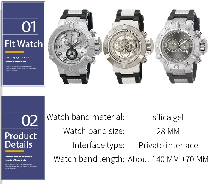 Резиновый силиконовый ремешок для часов, 28 мм, черный водонепроницаемый ремешок для часов, подходит для часов Invicta Noma III Noma 3 - 18520 19828