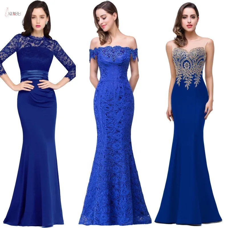 Длинное кружевное платье-русалка, с аппликацией, для подружек невесты, Королевского синего цвета, 2020