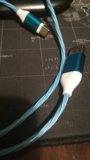 Шнур классный эффектный, свет струится просто, телефон заряжает быстро. Доставка на черепахах, почти 2 месяца. Заказал ещё.