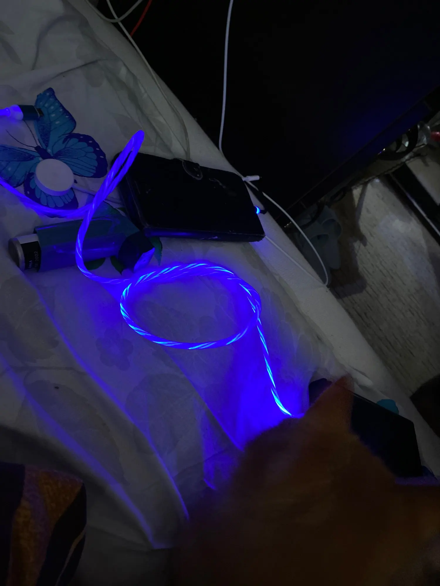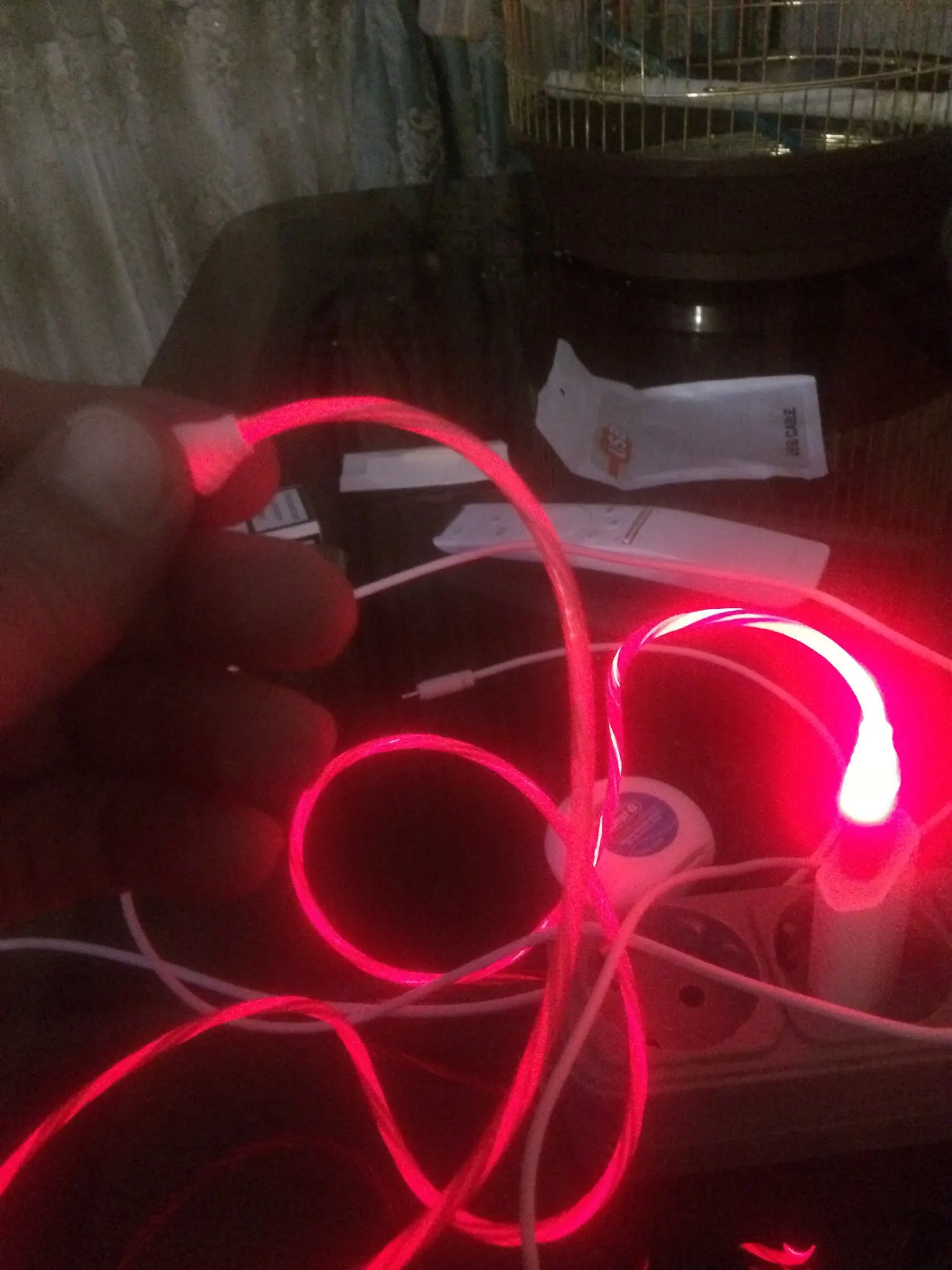 Прикольный провод телефон заряжает, в темноте светиться