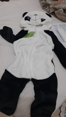 Комбинезон детский, фланелевый, с капюшоном, в виде мультяшной панд...