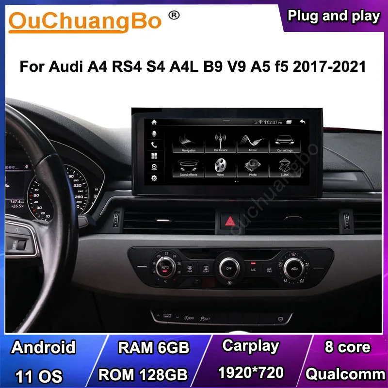 Автомагнитола Ouchuangbo, 4G, GPS, для Audi A4L A4 B9 V9 A5 f5 S4 2017-2019 с 8-ядерным процессором, 6 ГБ, 128 ГБ, ОС Android 11