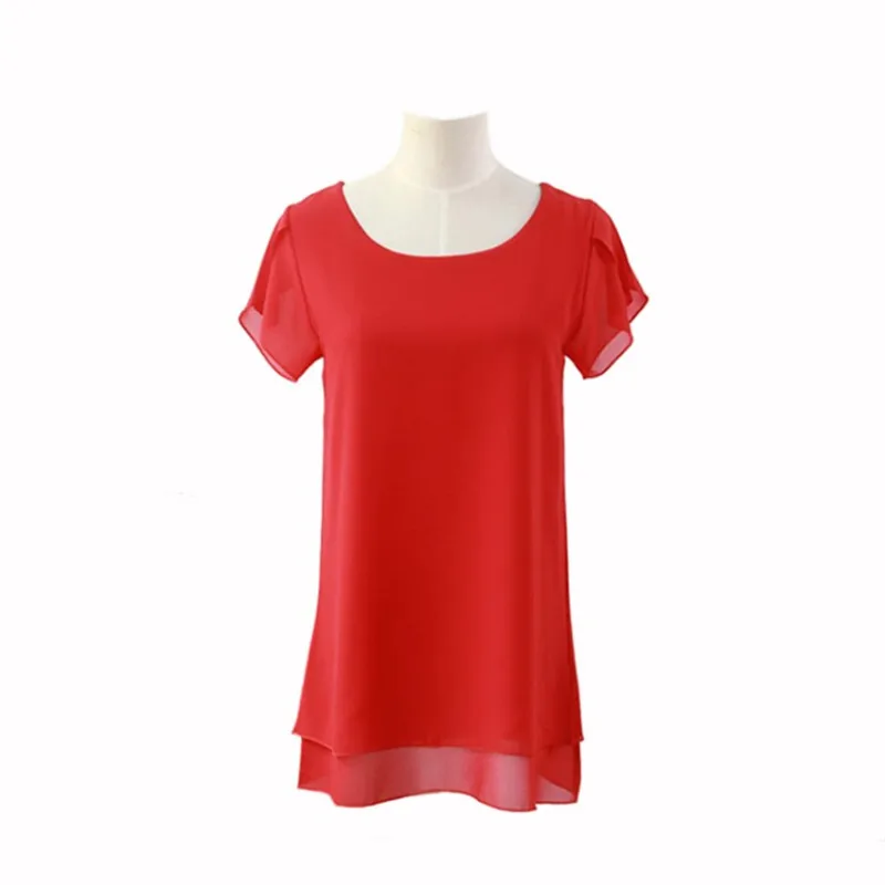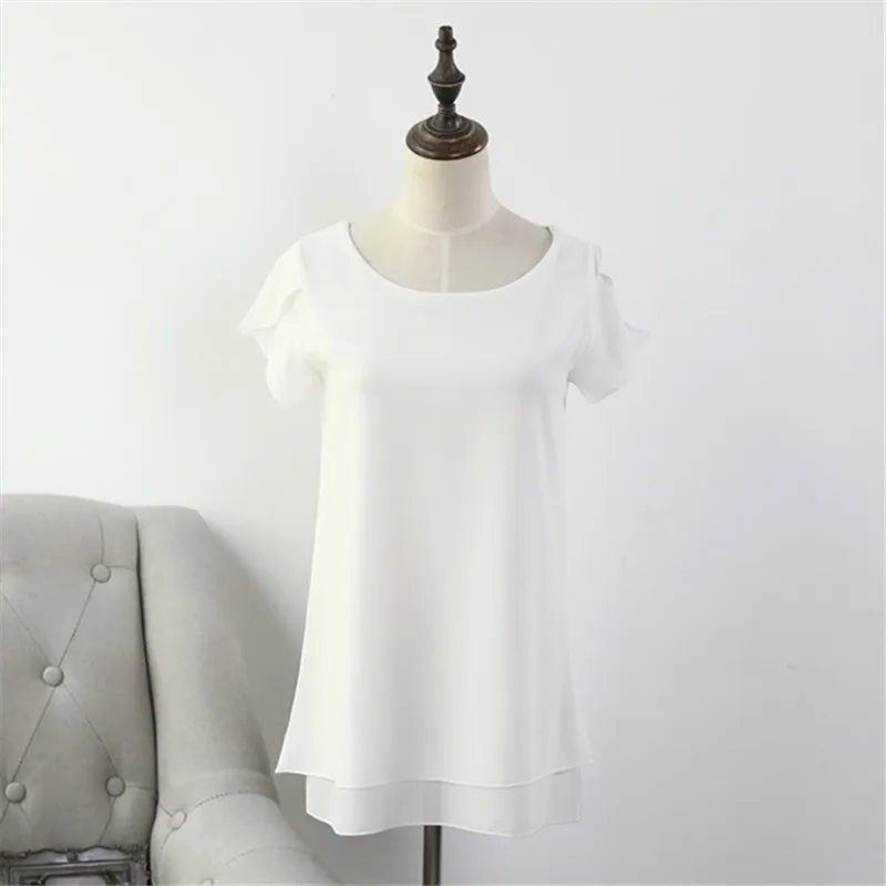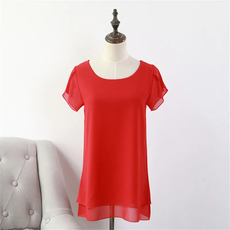 100% оригинал YUANYU женская летняя шифоновая блуза однотонная блуза с коротким рукавом простая повседневная с круглым вырезом Женские топы Плюс Размер 6XL