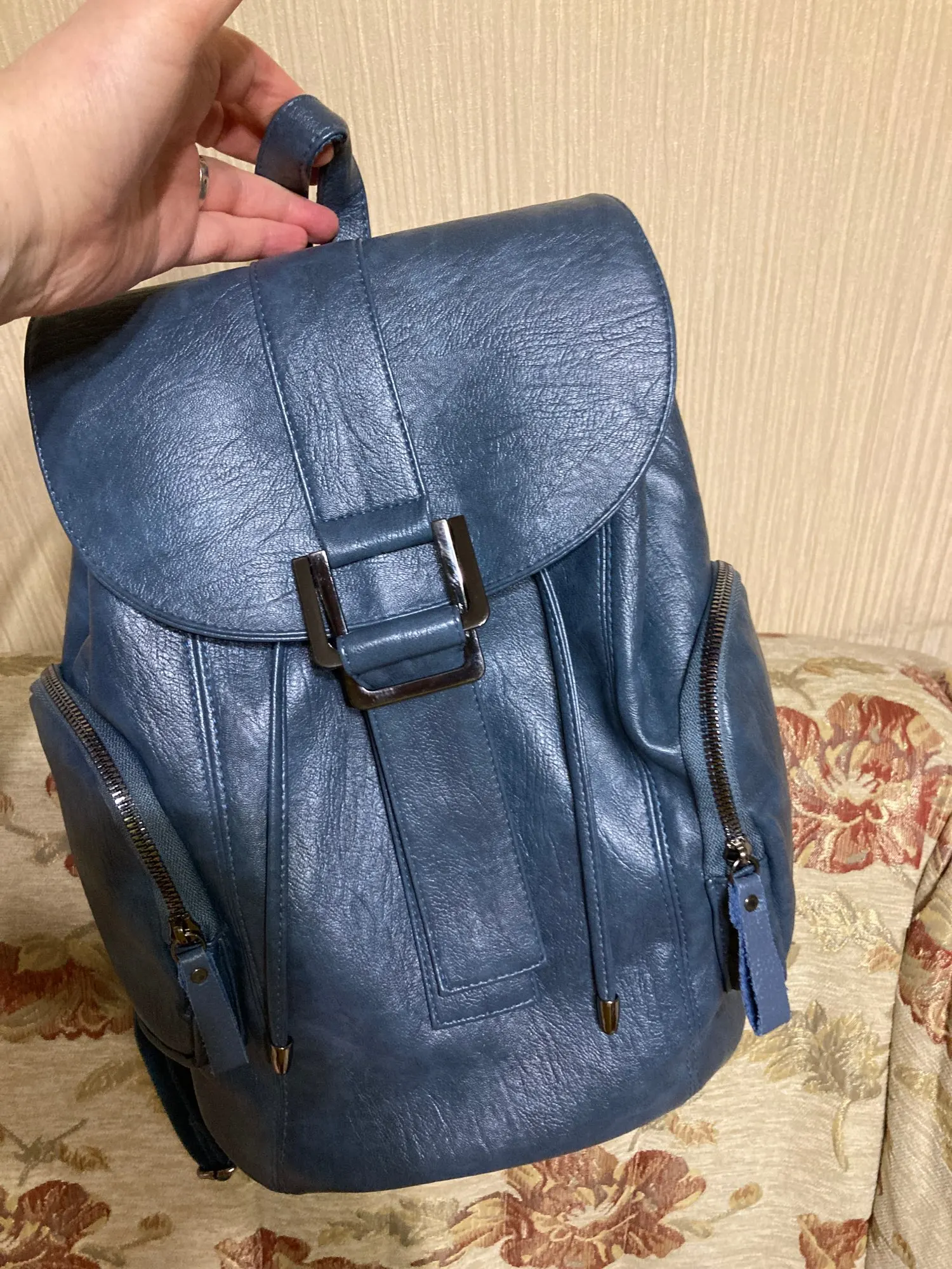супер рюкзак,очень куто смотрится голубой,как джинса.Кожзам качественный,запаха не,нитки не торчат,молнии и замки хорошие! Я очень довольно.Рекомендую! ДОСТАВКА СУПЕР быстрая в пятерочку