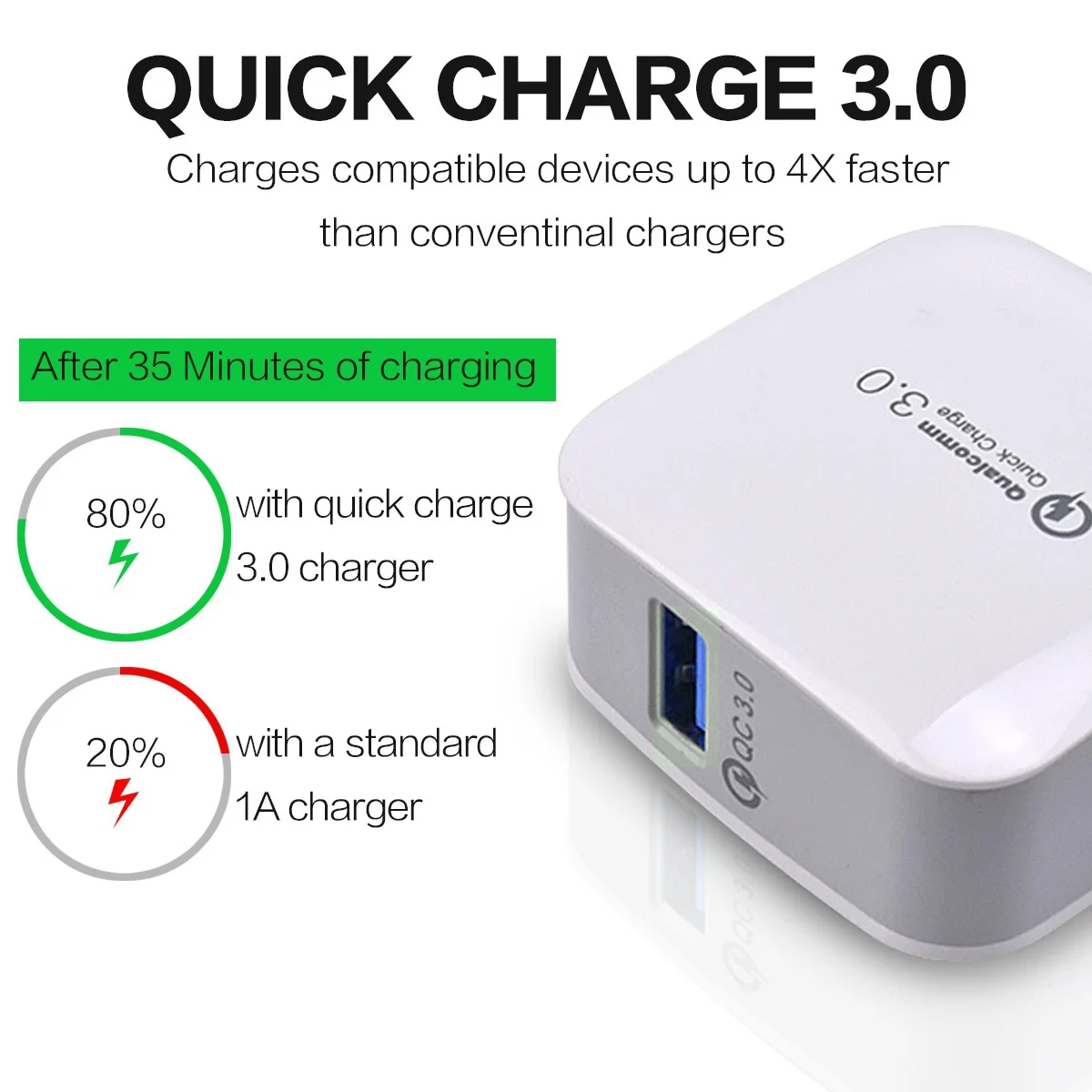 Быстрая зарядка 3,0, 18 Вт Быстрое зарядное устройство с USB-кабеле...