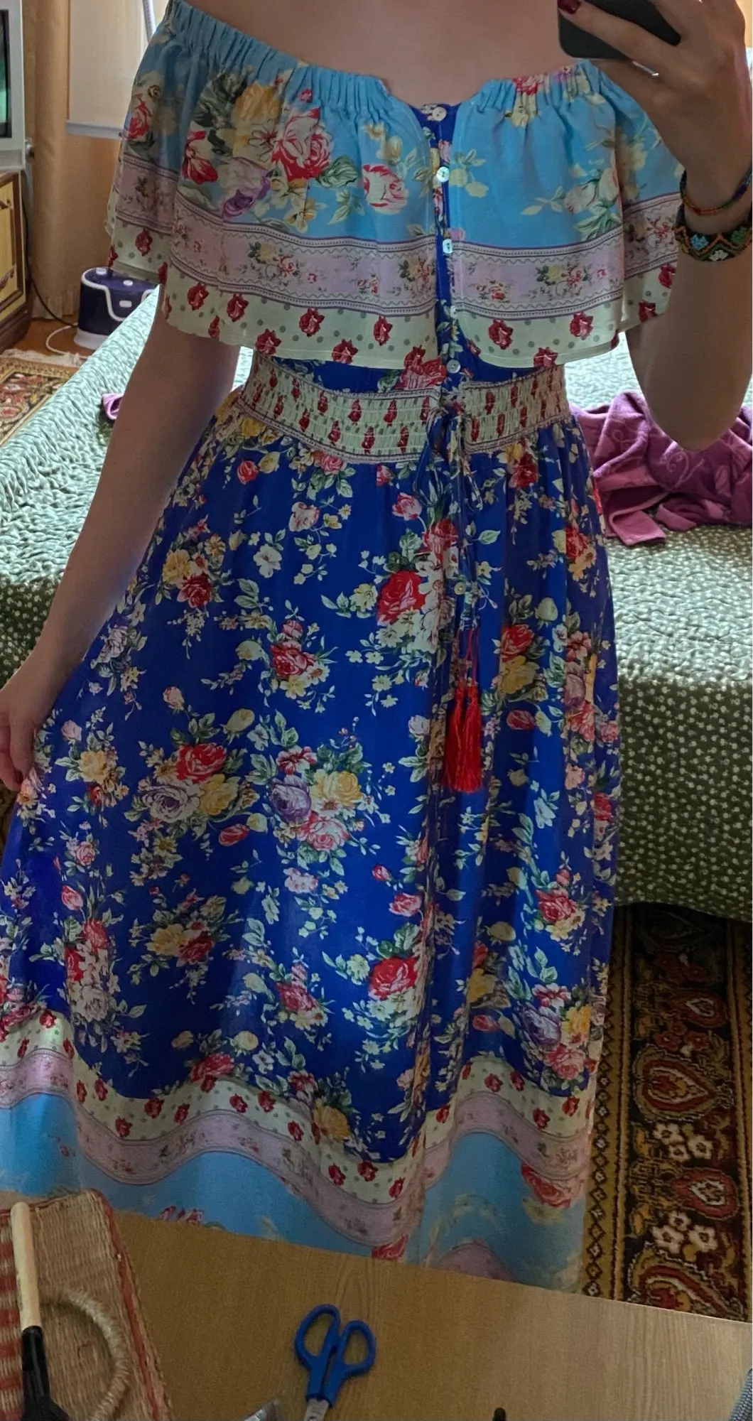 Винтажное шикарное женское платье в стиле хиппи с цветочным принтом...