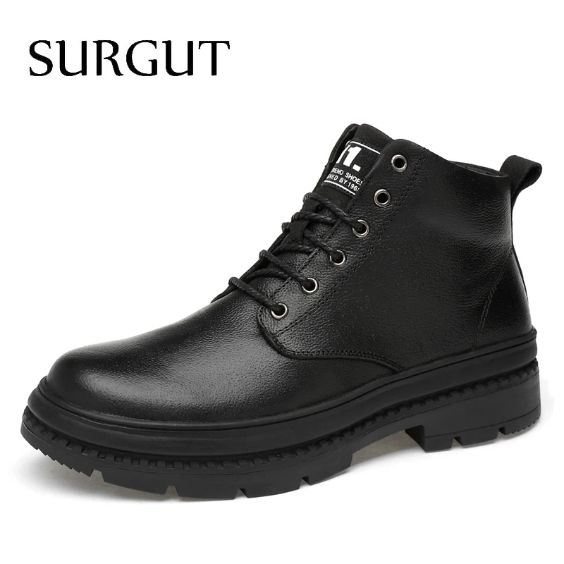 SURGUTНовинка; Модные мужские Ботильоны; Сезон осень-зима; Однотонные зимние ботинки с плюшевой подкладкой; Сохраняющие тепло водонепроницаемые мужские ботинки; Размеры 39-47