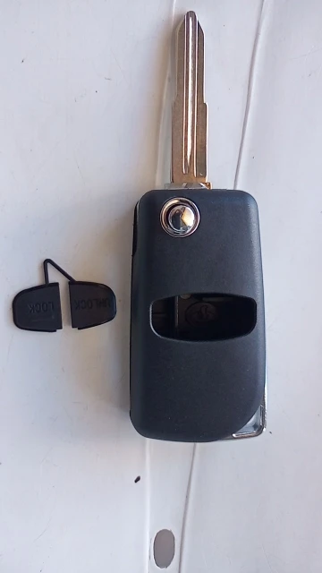 Минус балл за отсутствие заглушки, визуально ключ сразу теряет презентабельность, ну что за нахрен продавец? Сам ключ нормальный, работает. Жало немного болтается, ну будем надеяться прослужит какое-то время. Брусок иммобилайзера вставляется справа от кнопки. Ключ стягивается тремя винтам, средний с торца.