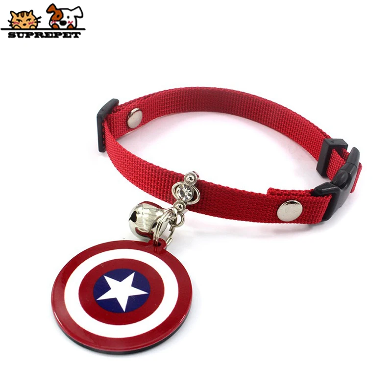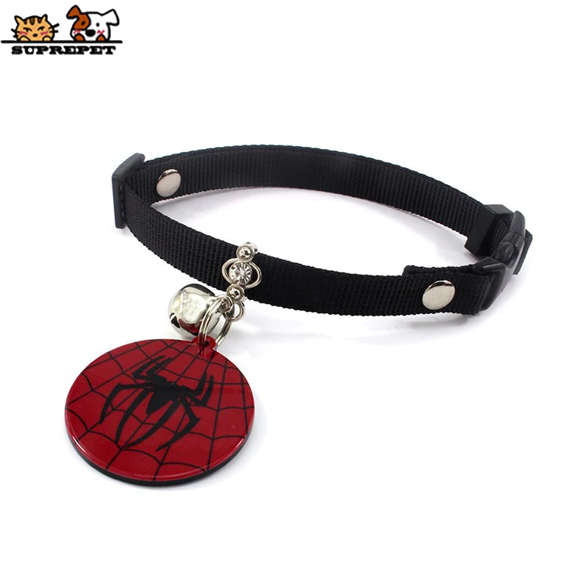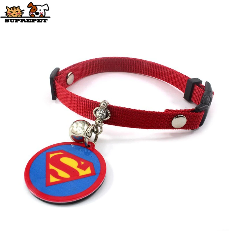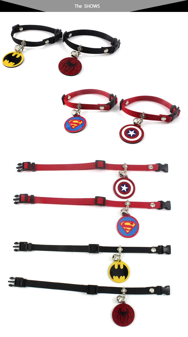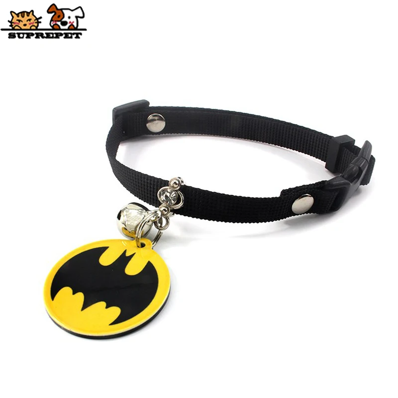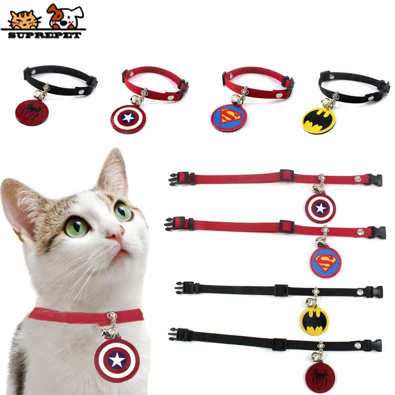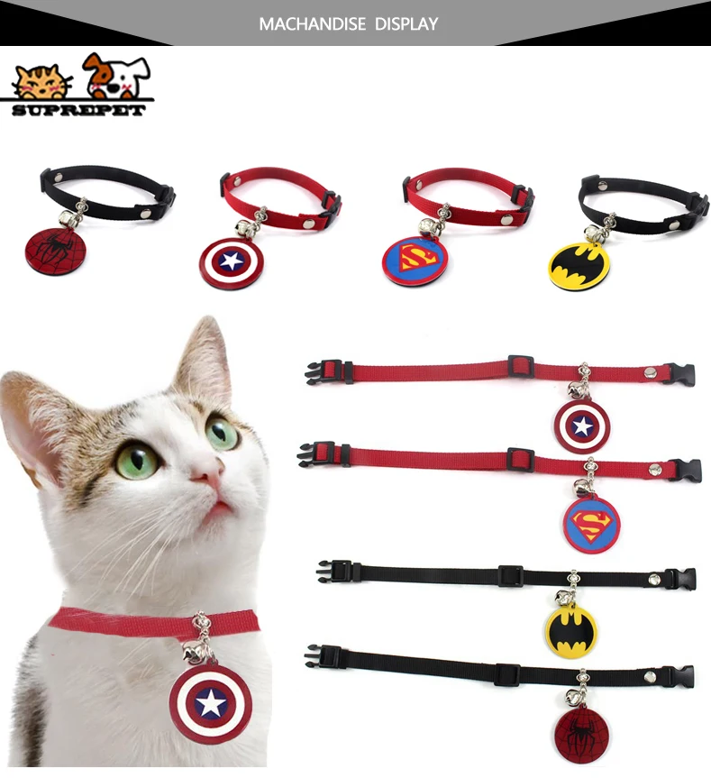 SUPREPET Кошка Щенок Ошейник нейлон черный и белый Регулируемый ремень Воротник с колокольчиком и 4 типа супер Heros тег