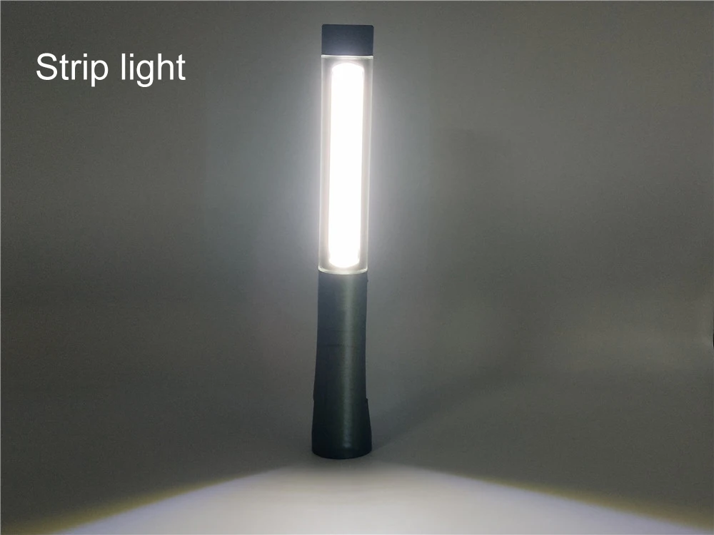 COB светодиодный, яркий и энергосберегающий.Магнитный нижний и верхний крюк для использования без рук.Нижняя часть кронштейна с 0 ° до 180 ° регулируемым подшипником, подходит для любого использования окружающей среды.3 режима работы, нажмите на центральный выключатель, круглый светильник/COB белый светильник/COB красный светильник вспышки.Это удобно для аварийного ремонта на дорогах, светильник для кемпинга в кемпинге или многоцелевой светильник, светильник для обслуживания.