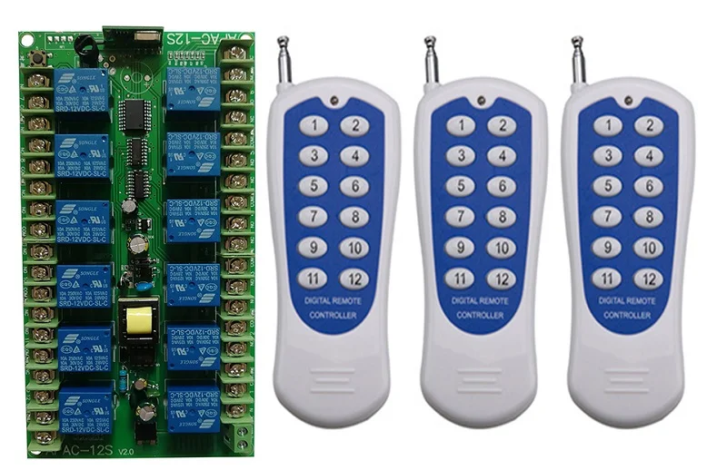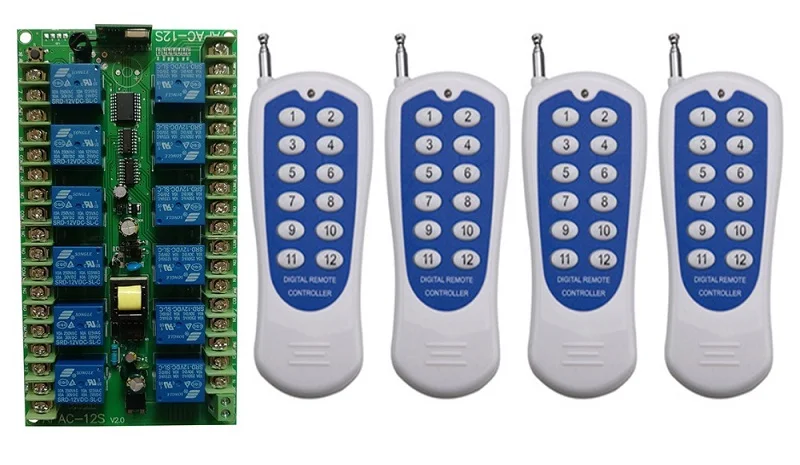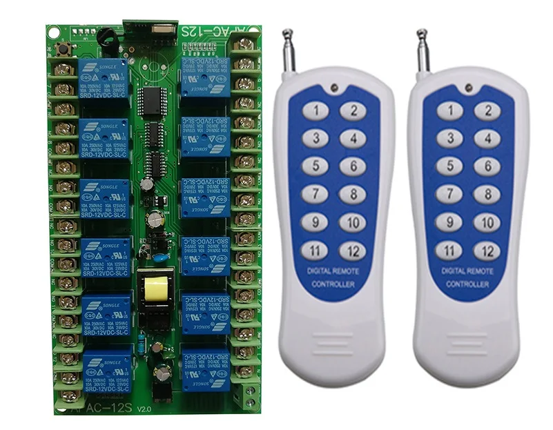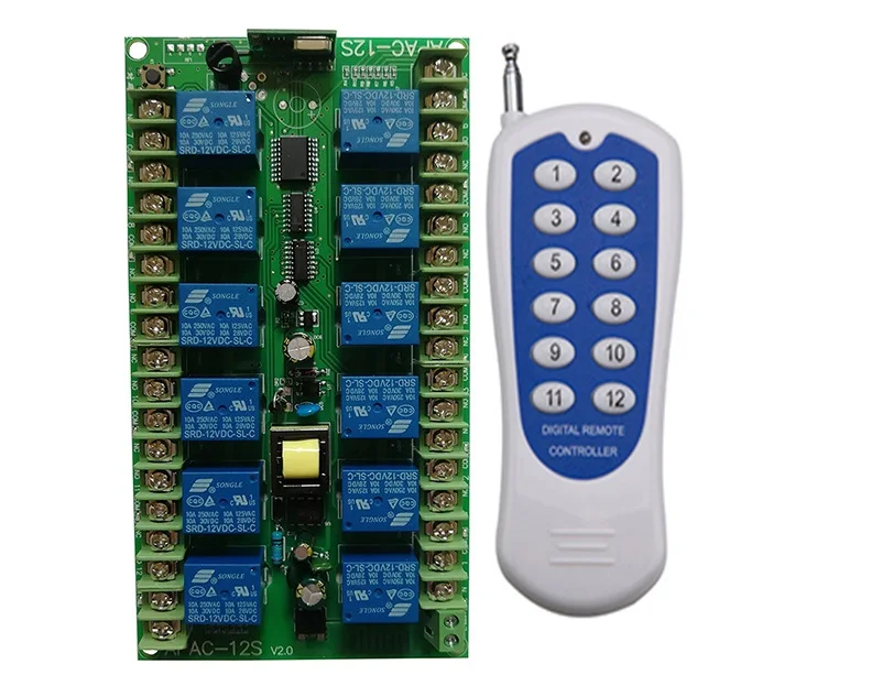 Нажмите одну кнопку для одного времени работы/включения. Нажмите ту же кнопку снова и выключите.(Нажмите 1 ,1 реле работает, нажмите 1 снова, 1 реле прекращает работу, 2-12 работает так)