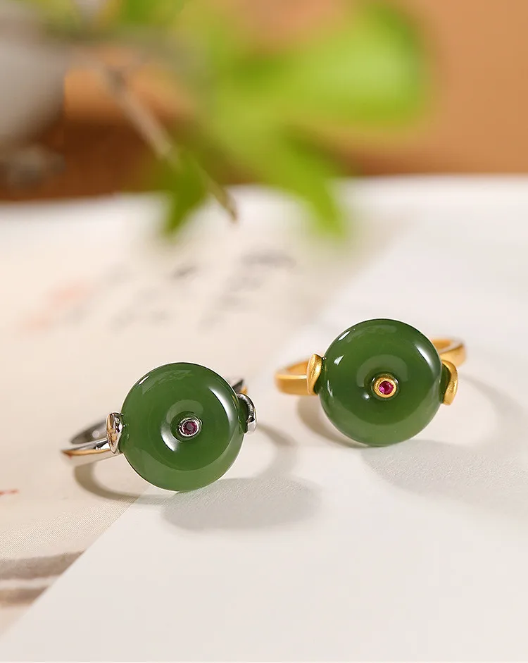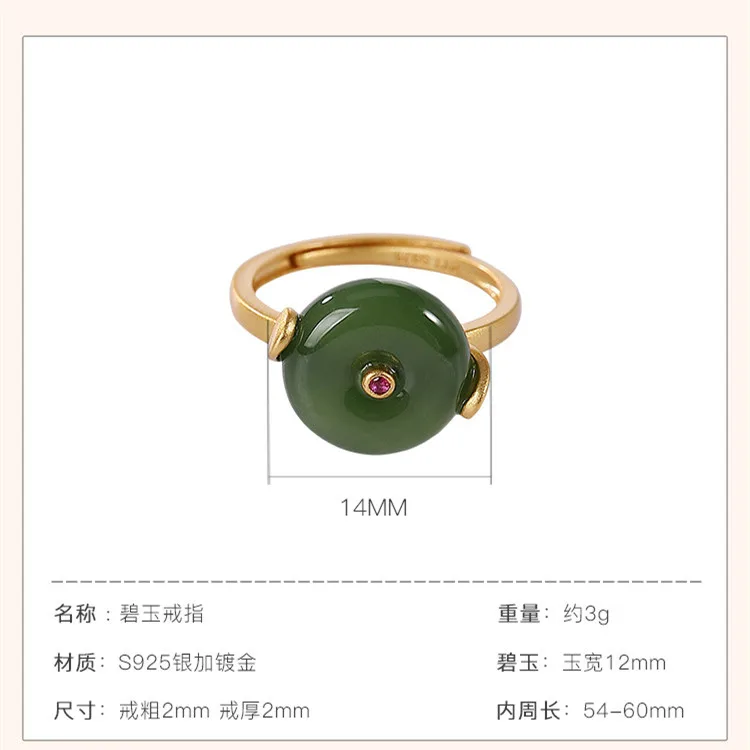 Женское кольцо из серебра 925 пробы, с натуральным нефритом