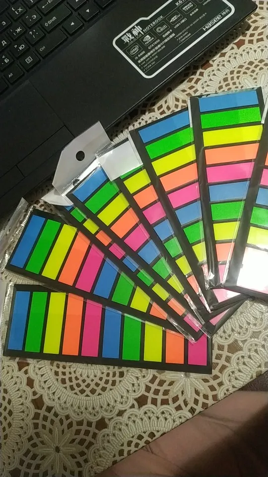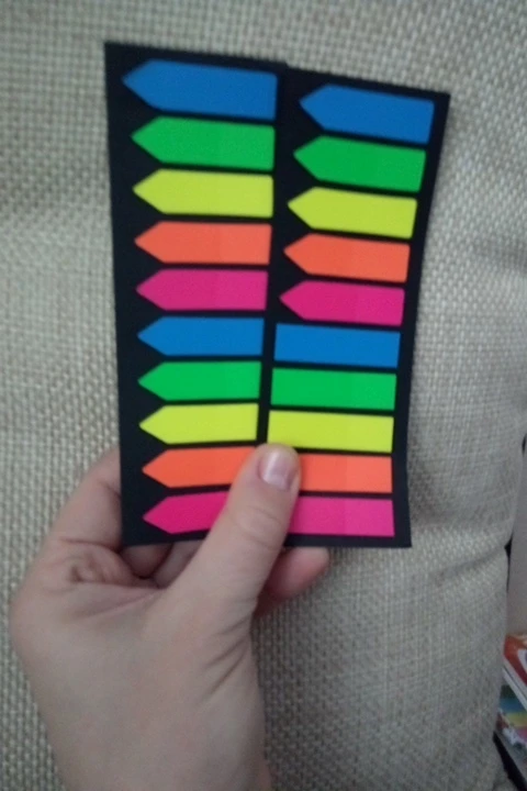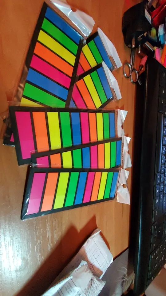 Заказ пришёл ориентировочно за 3 недели в Эстонию. Продавец быстро отправил заказ, в течение суток после оплаты. Наклейки яркие, клеевая часть хорошая, отлично крепится ❤️ Я часто использую подобные закладки для книг, поэтому постоянно заказываю. Цена за 200 штук считаю очень даже приемлемой. Рекомендую