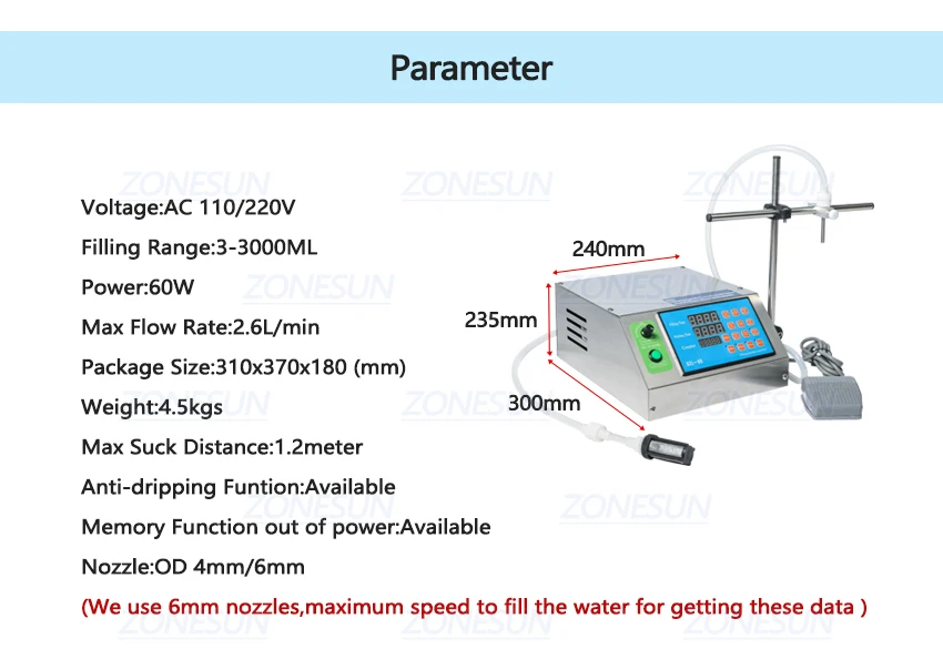 (Мы используем насадки 6 мм, максимальная скорость для заполнения воды для получения этих данных)