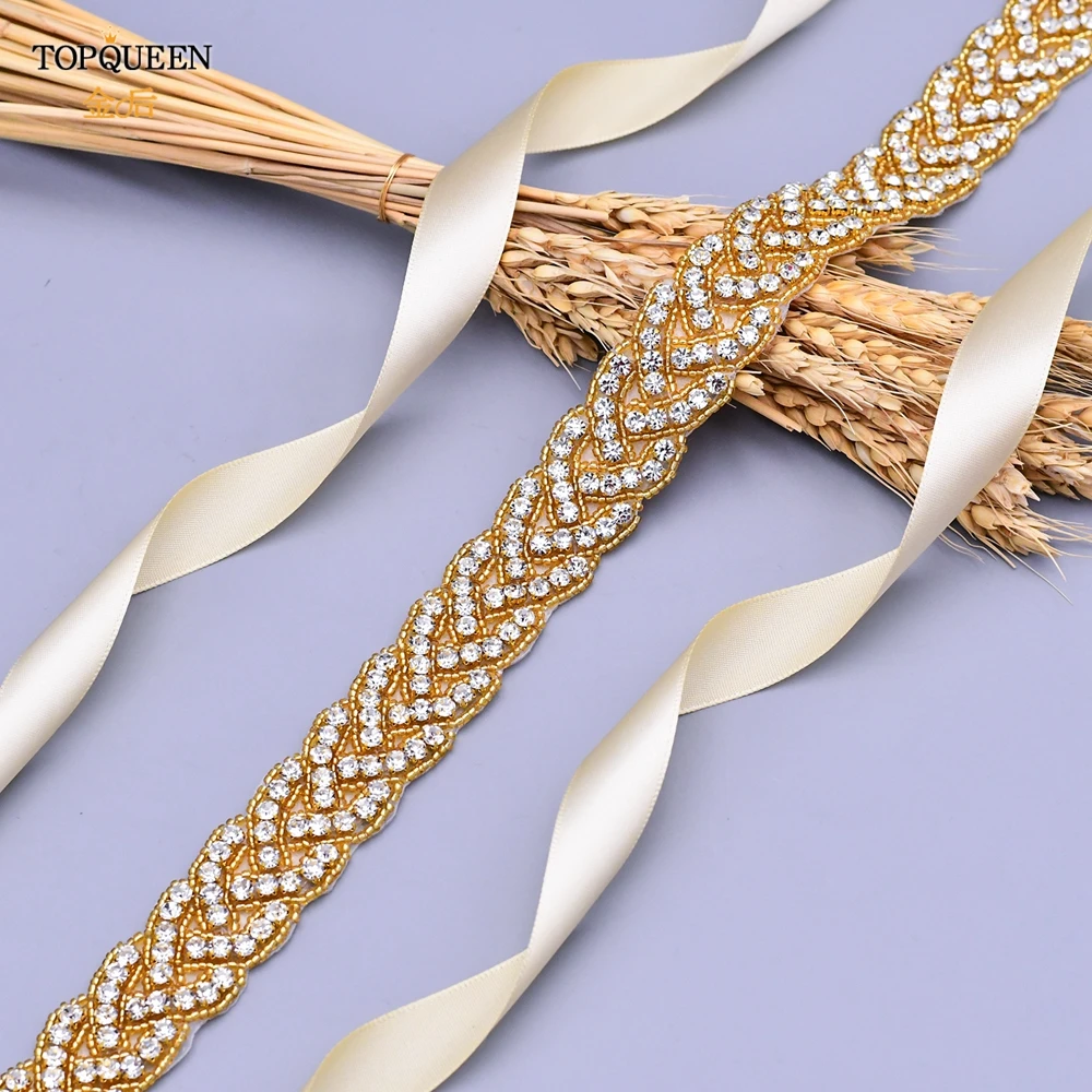 TOPQUEEN S216 свадебный пояс ручной работы, полный пояс со стразами для свадебного платья, Роскошные вечерние женские аксессуары с аппликацией