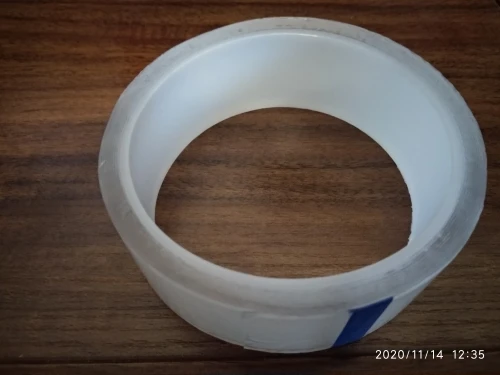 лента хорошая и очень липкая. Однако сложно приклеить на круглую раковину. в течение месяца после оклейки все держится супер, вода не затекает, не отлипает. прозрачная почти незаметна.