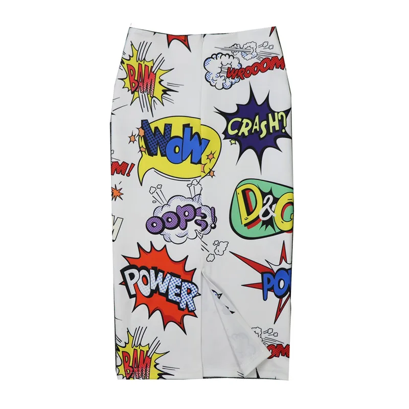 Женская летняя юбка-карандаш с мультяшным принтом, облегающая юбка с высокой талией и графическим принтом, Женская облегающая юбка SP606