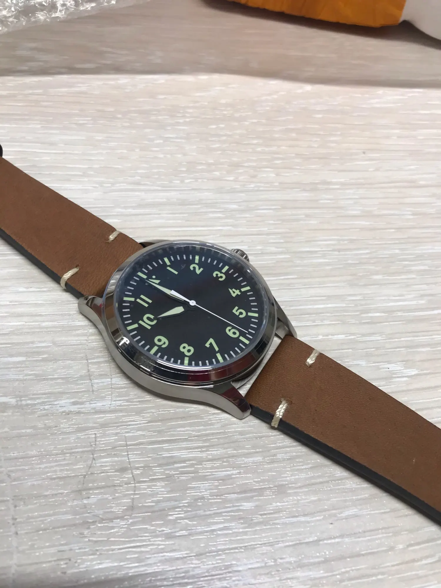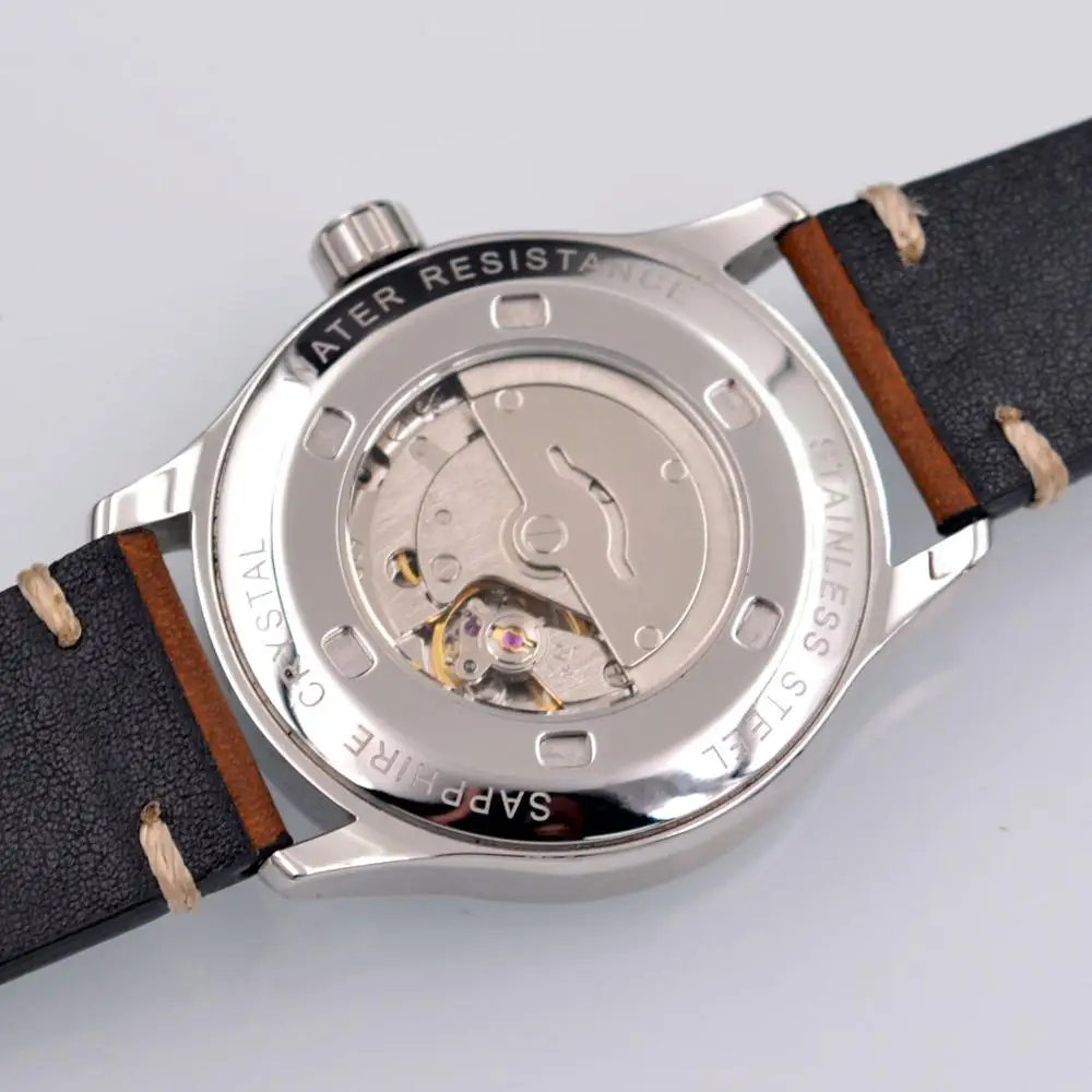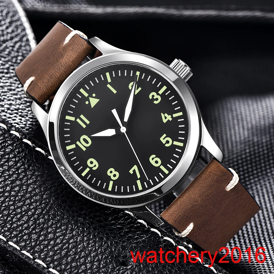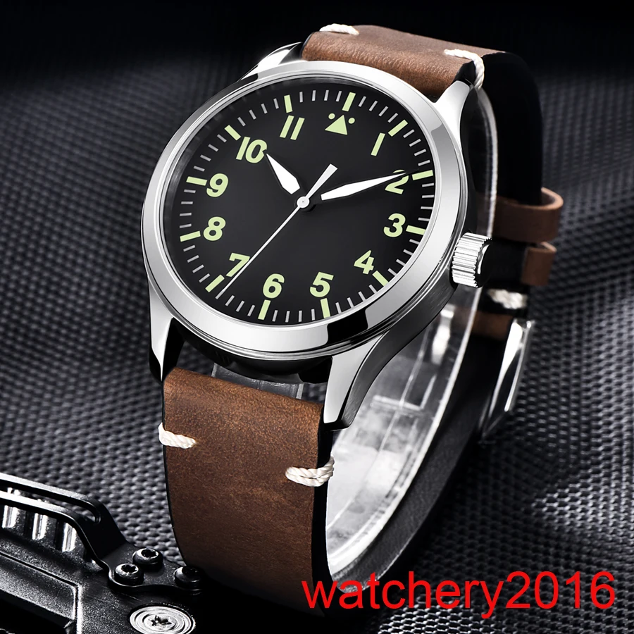 Часы мужские с кожаным ремешком, со стерильным циферблатом, со светящимися метками, автоподзаводом, 42 мм, с сапфировым стеклом Miyota 8215