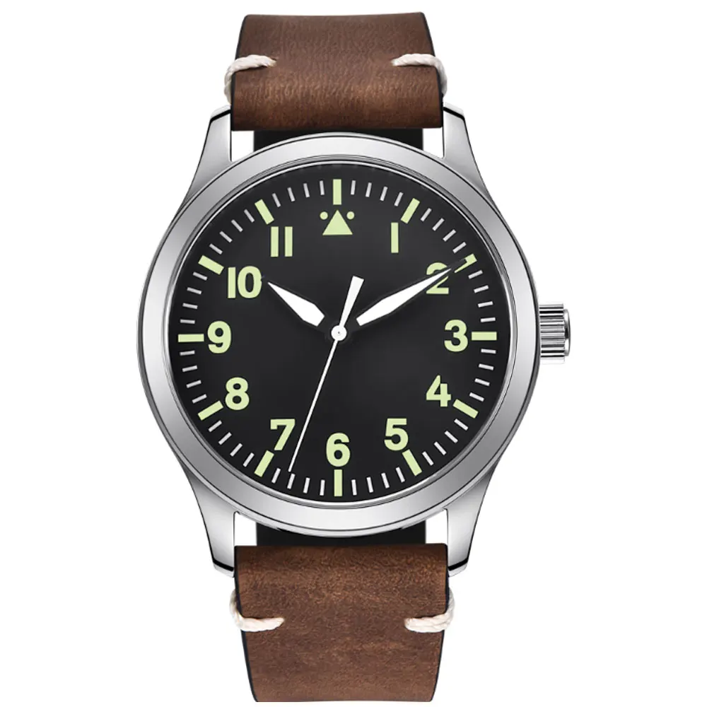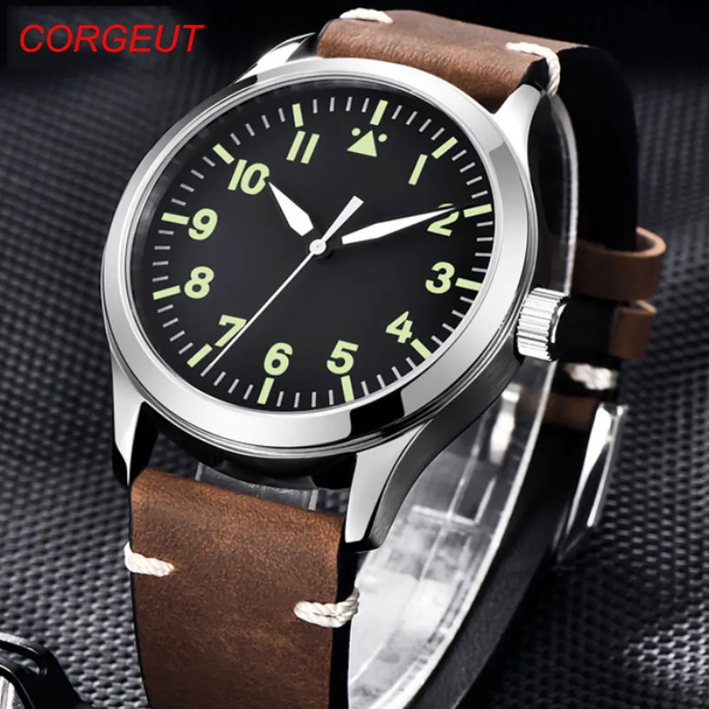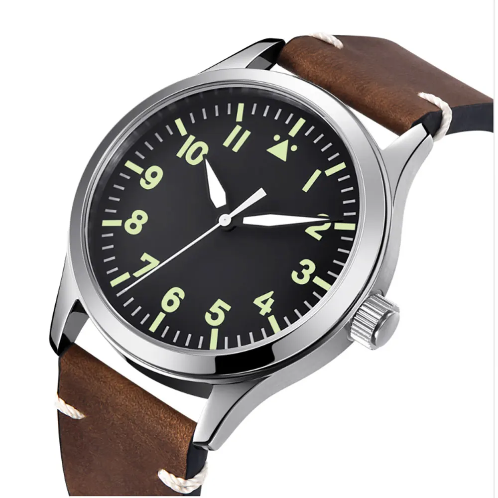 Часы мужские с кожаным ремешком, со стерильным циферблатом, со светящимися метками, автоподзаводом, 42 мм, с сапфировым стеклом Miyota 8215