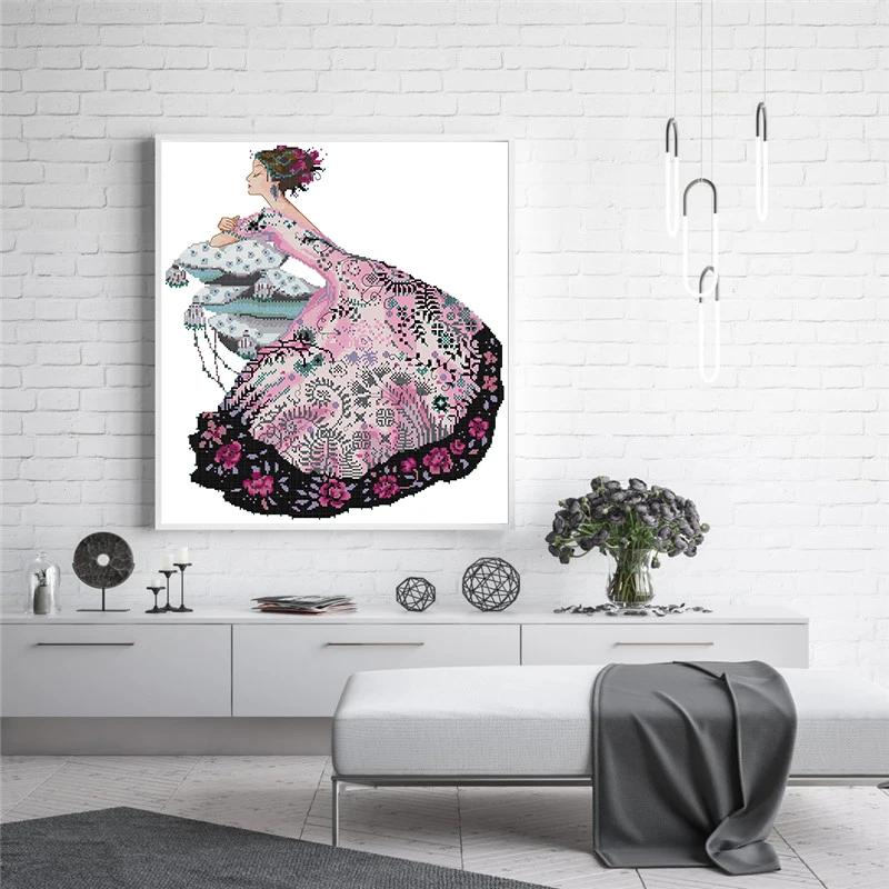 Ткани с принтом для женщин в цветочном стиле, 14CT, наборы для вышивки крестиком, вышивка, рукоделие, домашний декор