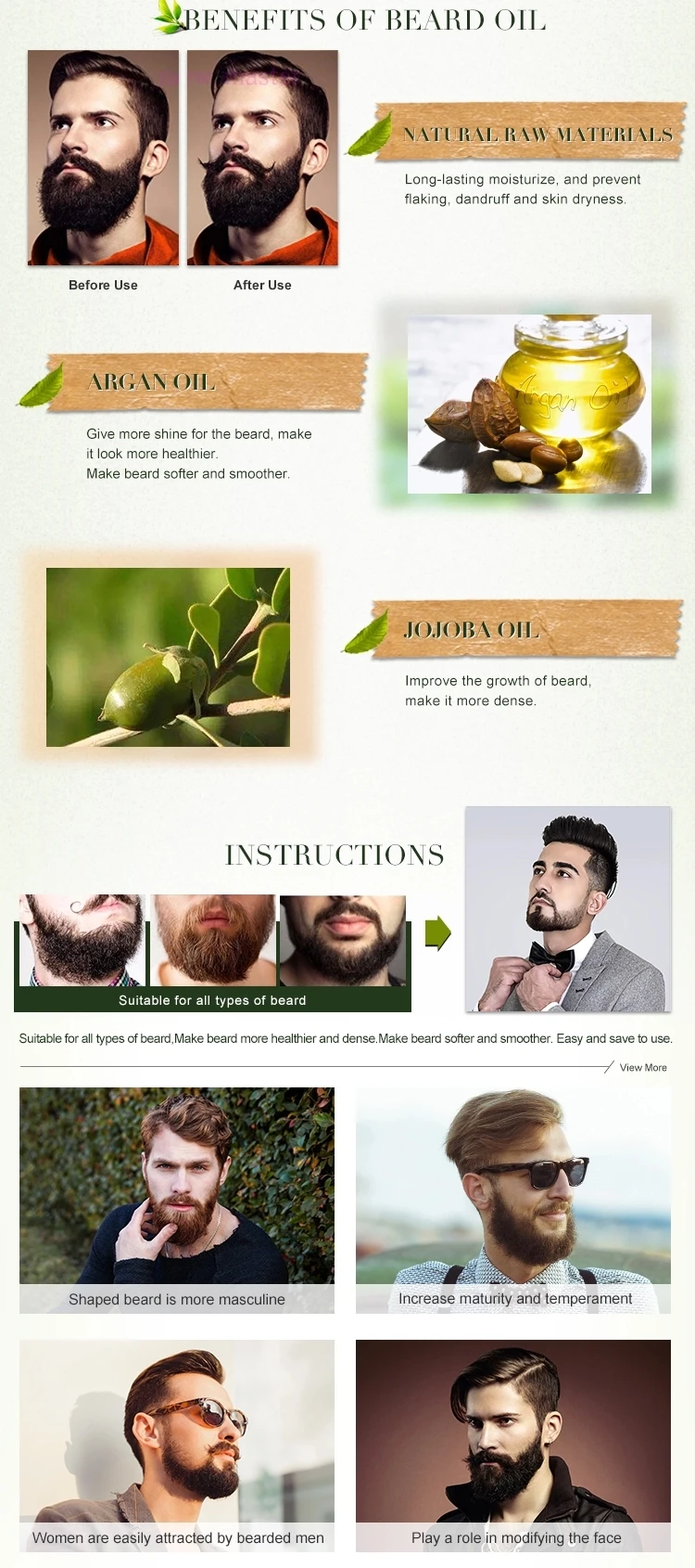 Mokeru масло для бороды, содержит драгоценныеНатуральное растительное эфирное масло, состоящее из арганового масла, масла жожобаИ других натуральных масел. Эффект увлажнения, смягчения,Удаление Перхоти бороды, улучшение сухости и запутанности бороды,Обеспечивает питание, снимает зуд кожи, вызванный ростомБорода и уход за кожей корня бороды.