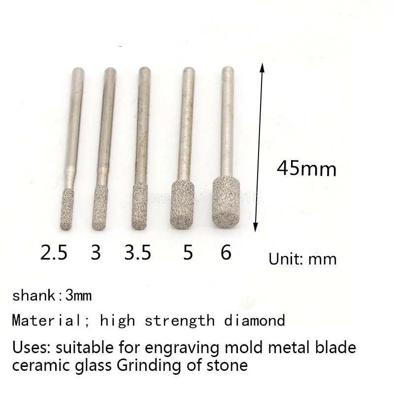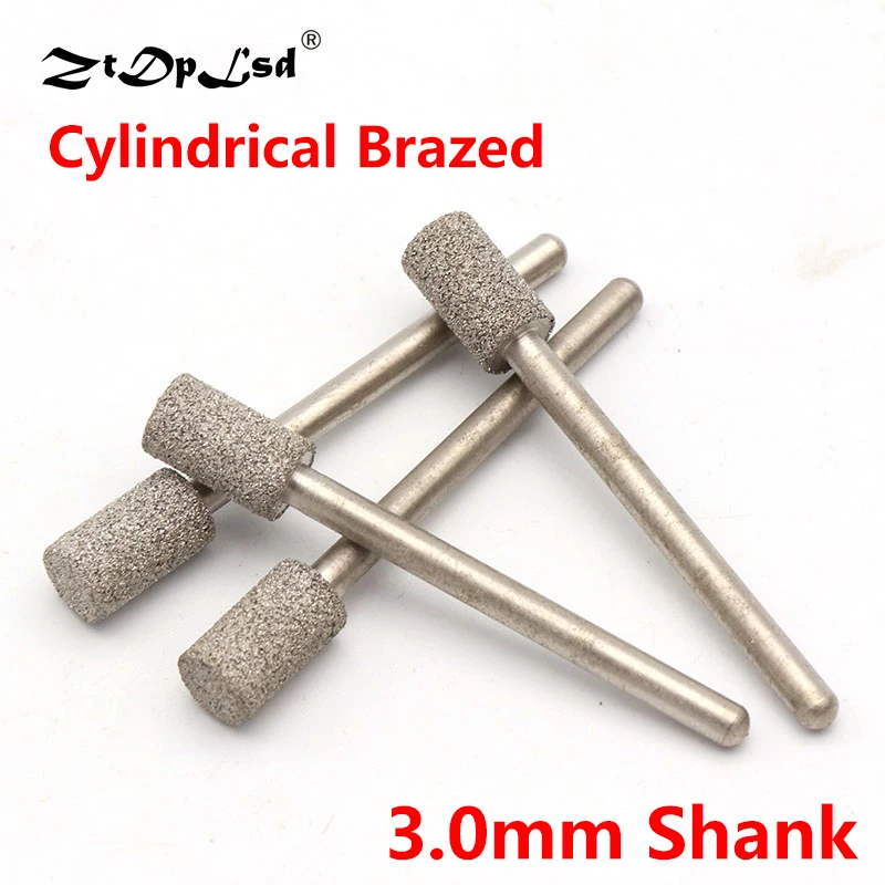 1 шт. 3 мм хвостовик цилиндрическая паяная алмазная шлифовальная головка заусенцы резьба пилинг инструменты для нефрита камень стекло металл керамическая фреза