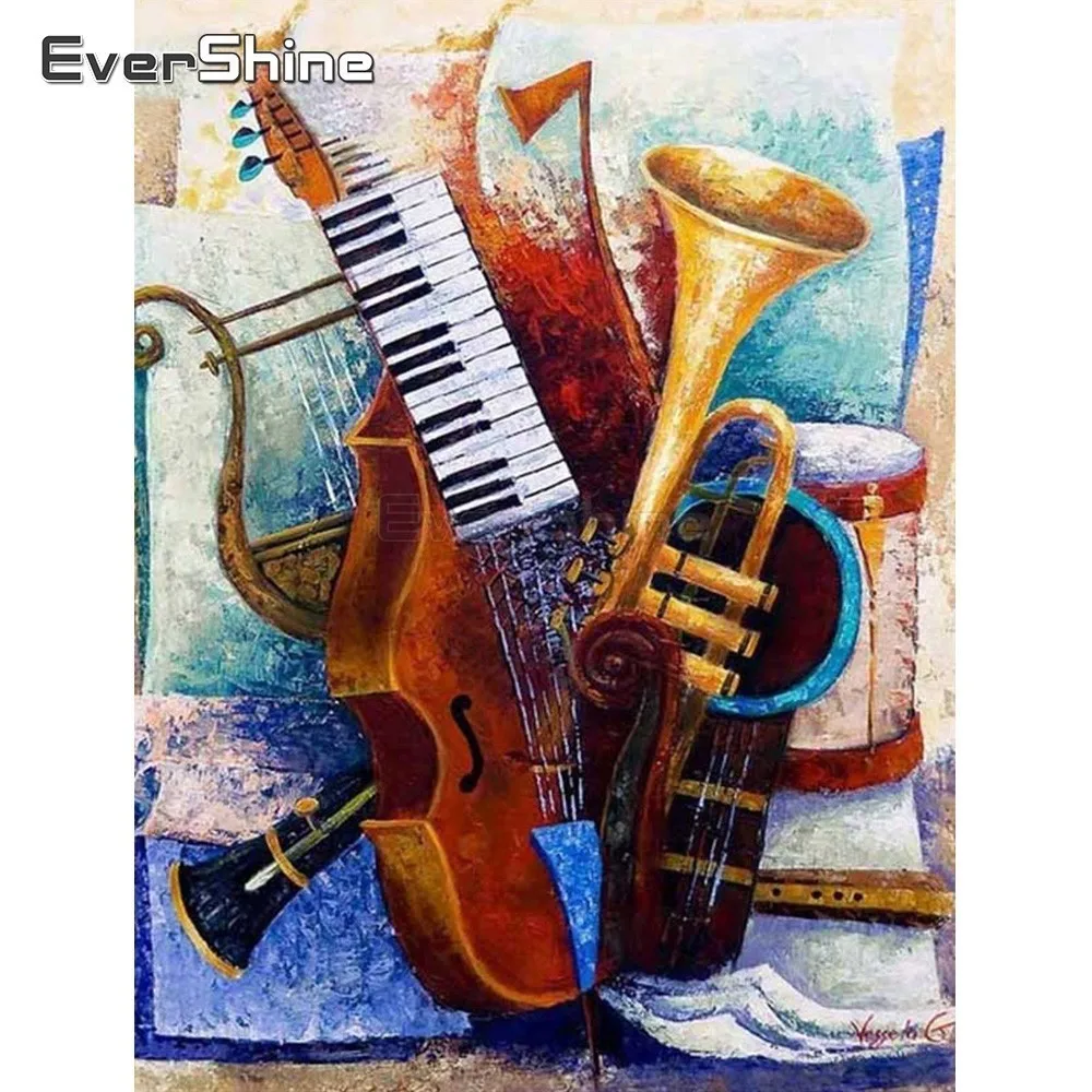 EverShine 5D алмазная живопись своими руками пейзаж Картина Стразы Алмазная мозаика музыкальный инструмент Алмазная вышивка Настенный декор