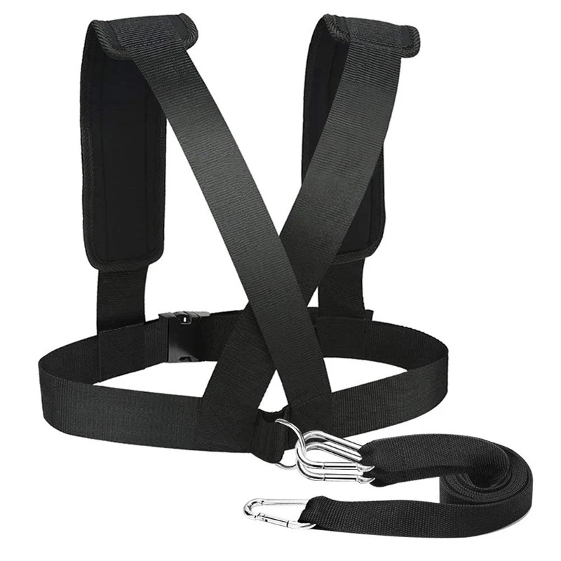Эти сани для фитнеса изготовлены из высокопрочного двухслойного нейлона и стального крючка для вытягивания шин, саней, тренировки сопротивления, тренировки командных видов спорта