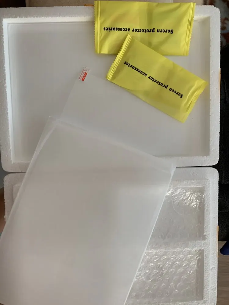 Быстрая доставка. Хорошо упакованы. Очень качественное закаленное стекло, очень толстое. Хорошо защитит ipad.