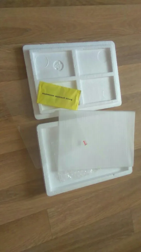 Это хорошая защита для экрана, она была очень хорошо защищена пробкой, а также упаковкой для очистки, прежде чем положить ее. Выглядит хорошо, покрывает весь iPad, хотя я не был в состоянии остановить немного белый пузырь от пребывания там :(