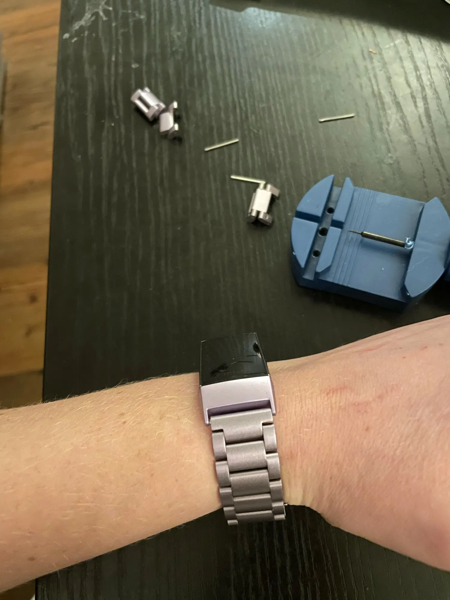 Het bandje is prima , alleen het apparaat om het bandje kleiner te maken , was helaas kapot !
