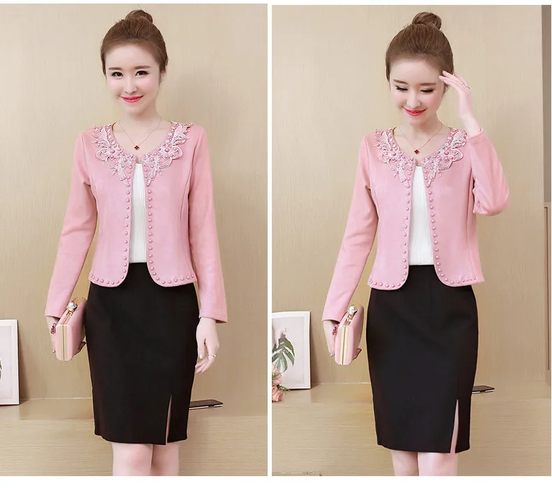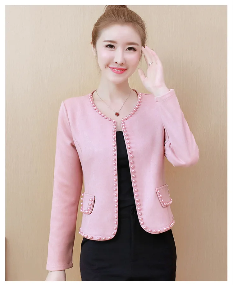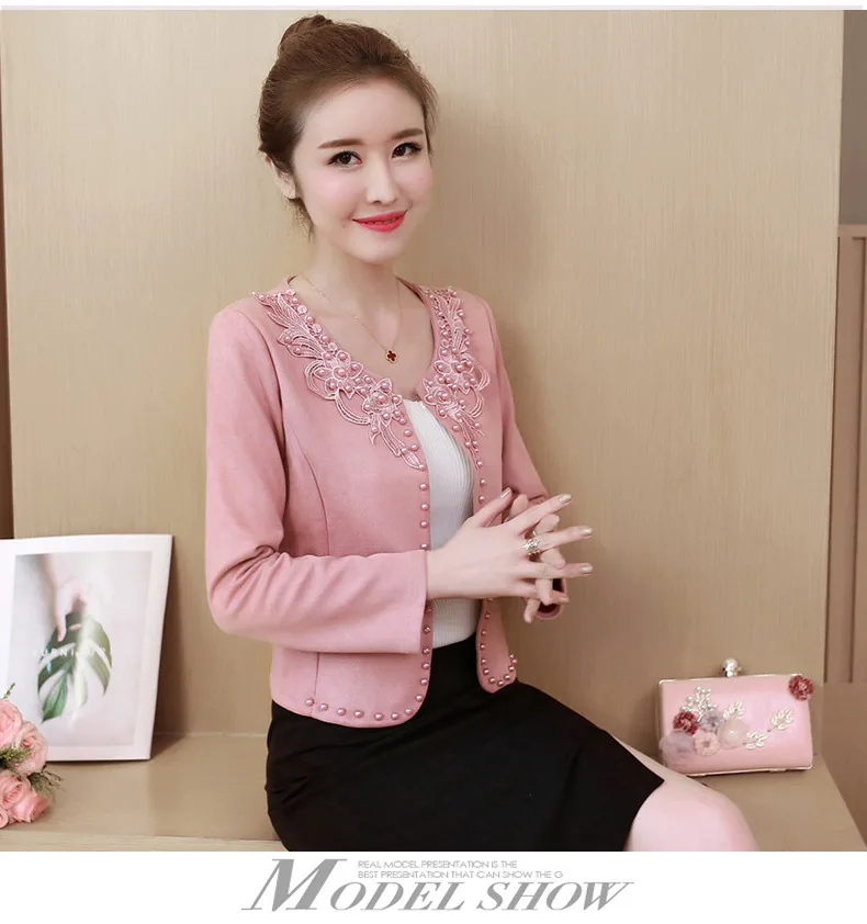 Женская короткая куртка с длинным рукавом, розовая Базовая куртка большого размера 4XL с бисером, тонкая верхняя одежда с вышивкой, весна-осень 2019