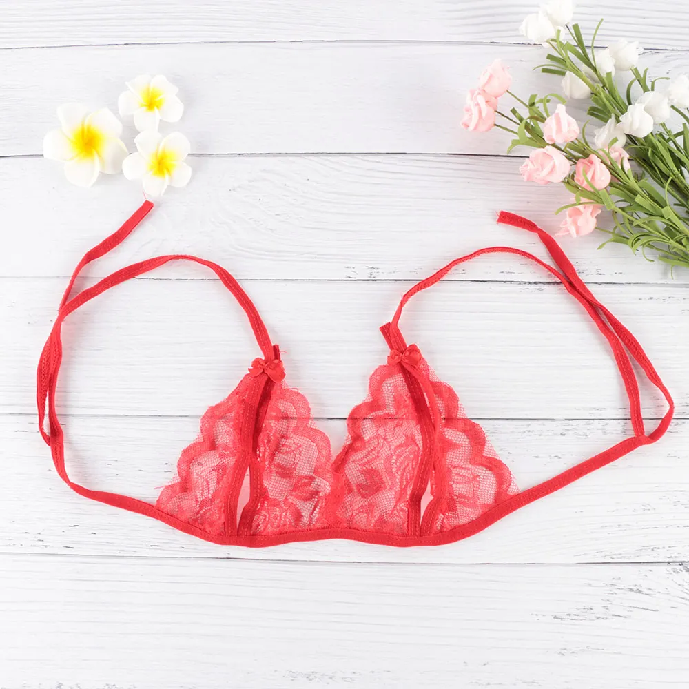 Сексуальный комплект с бюстгальтером с открытой промежностью, женское кружевное нижнее белье на бретельках, эротическое белье, женское нижнее белье, комплект с бюстгальтером-Бралетт на завязках, Женский комплект нижнего белья