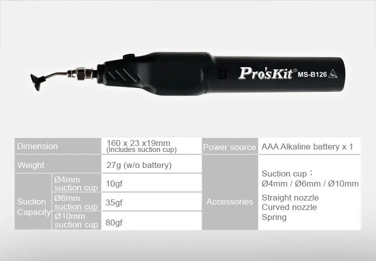 Pro'sKit MS-B126 мощный Электрический Вакуумный патрон, Антистатическая всасывающая ручка для SMT IC Chip, электронные детали, устройство для поглощения линз