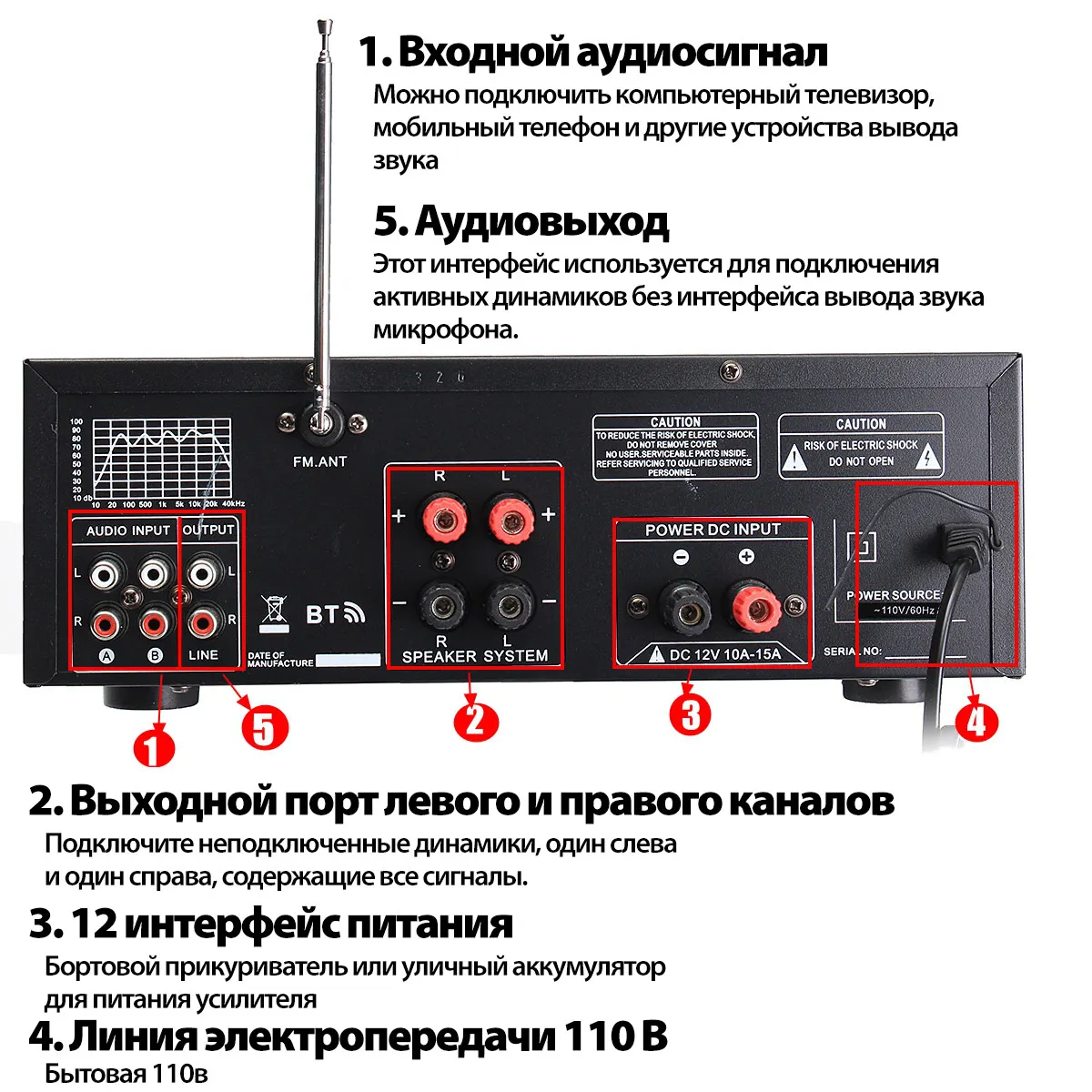 Усилитель мощности звука Hi-Fi 2000 Вт, 5,0 каналов, bluetooth, 326BT, 12 В220 В, AV-усилитель, динамик с пультом дистанционного управления, 4 микро, для автомобиля, дома