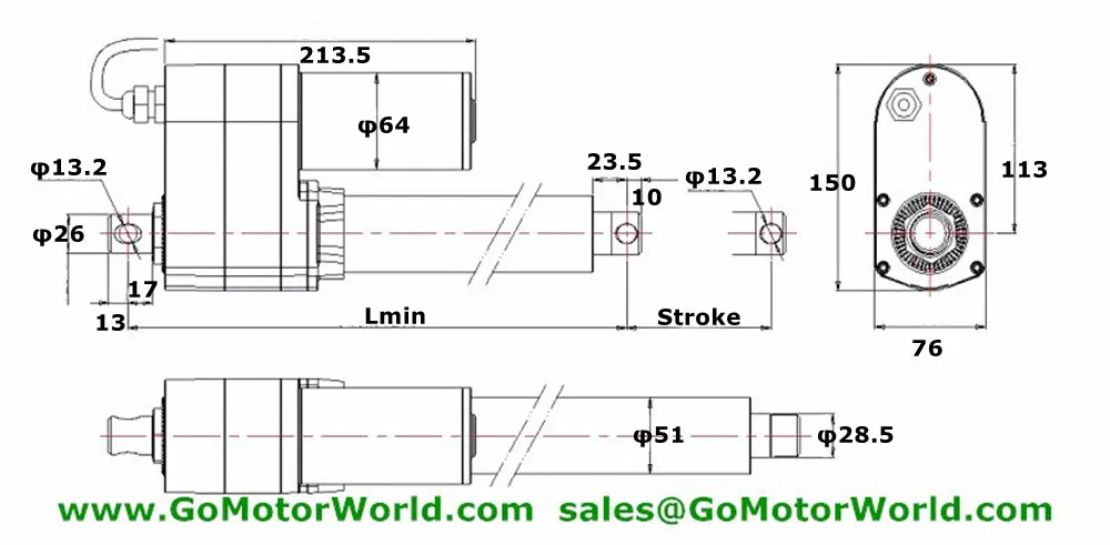 Lmin означает, что длина в разложенном виде линейный привод 100% полностью убирается, в то же время, он будет касаться хвост ограниченный переключатель и автоматически останавливается, очень безопасно.