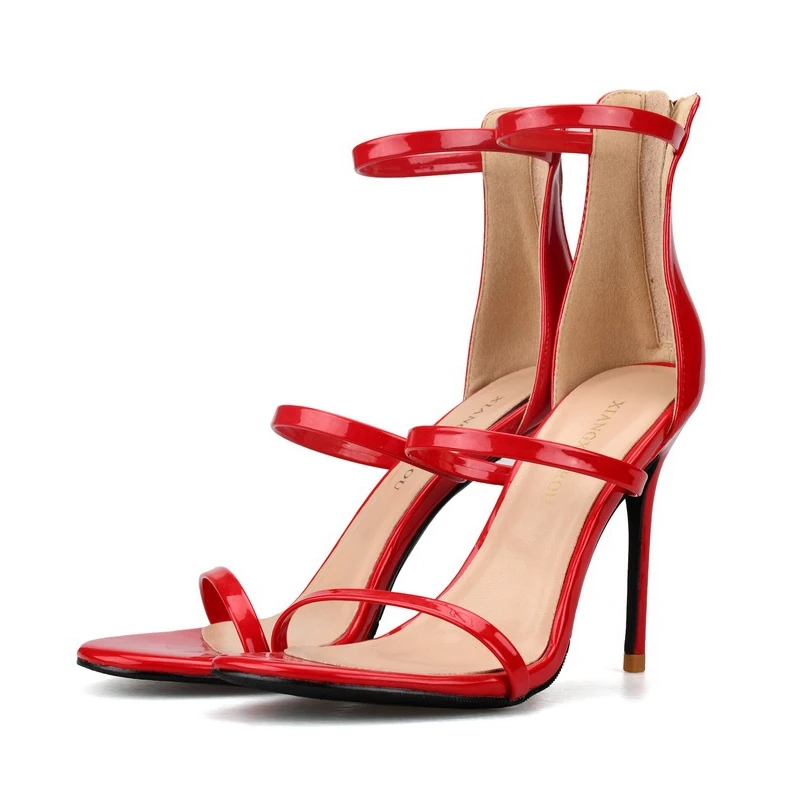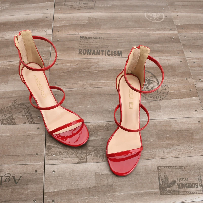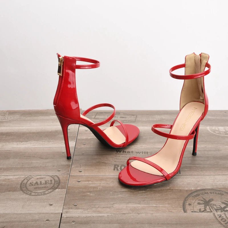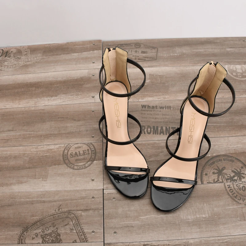 Босоножки из натуральной овечьей кожи; Новинка; Модная женская летняя офисная обувь; Обувь на тонком высоком каблуке с открытым носком; Большие размеры