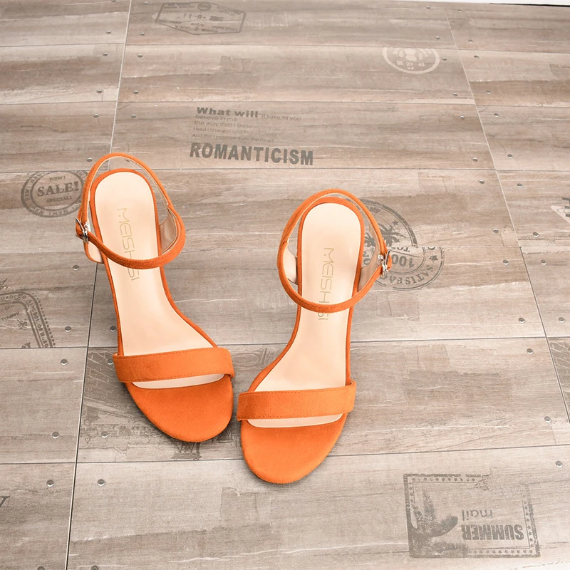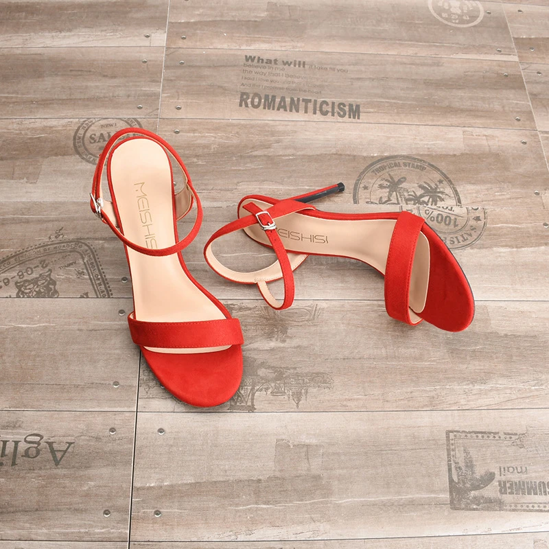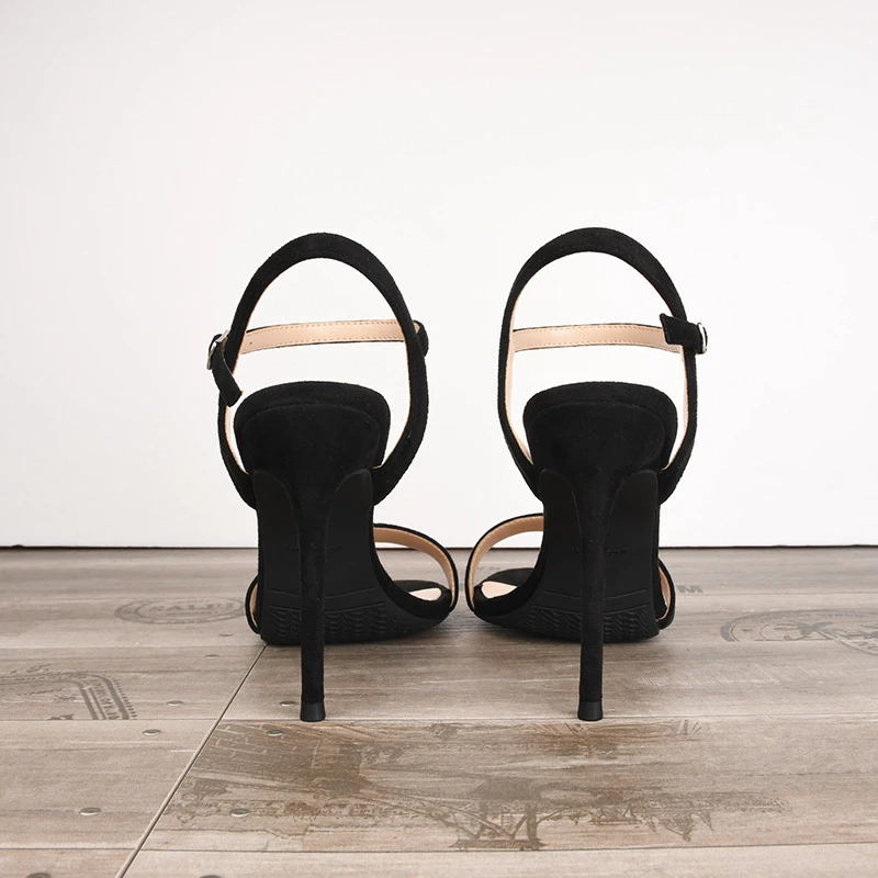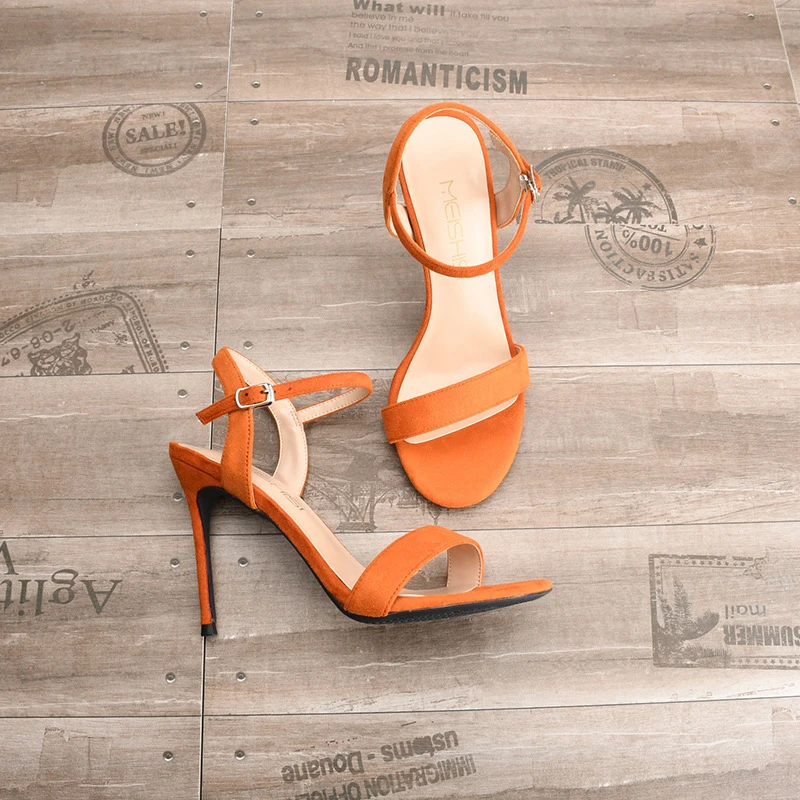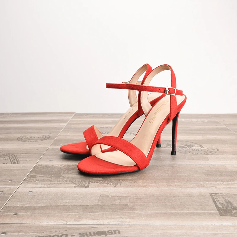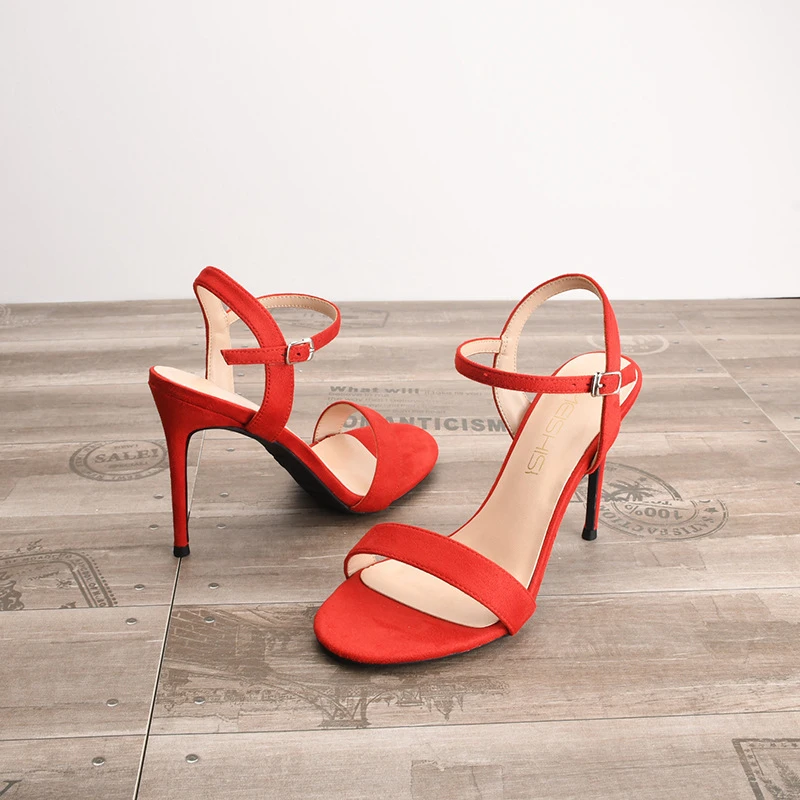 Дизайнерская обувь; Детские босоножки из замши на высоком каблуке; Летние босоножки на тонком высоком каблуке с ремешком на щиколотке; Женская обувь для вечеринки; H0045