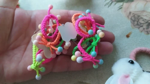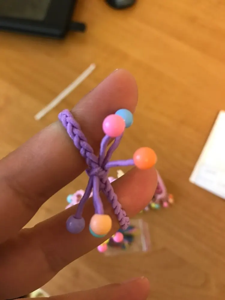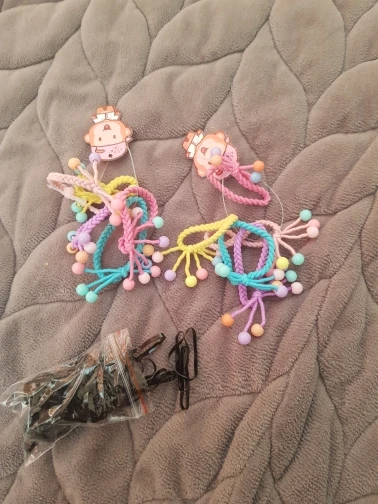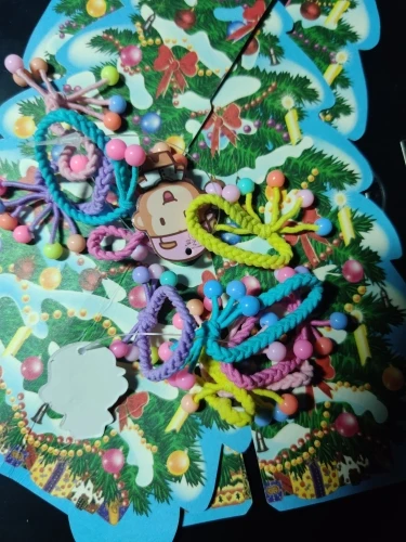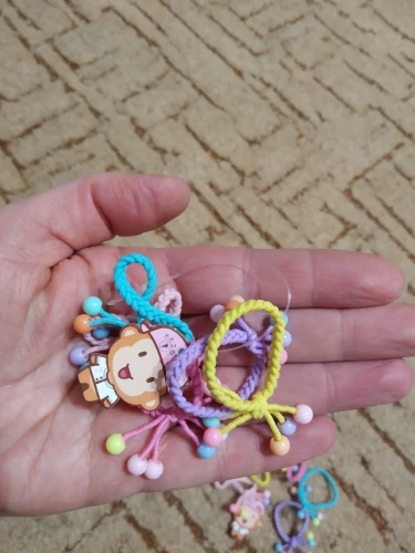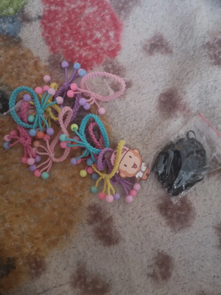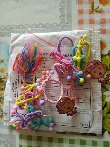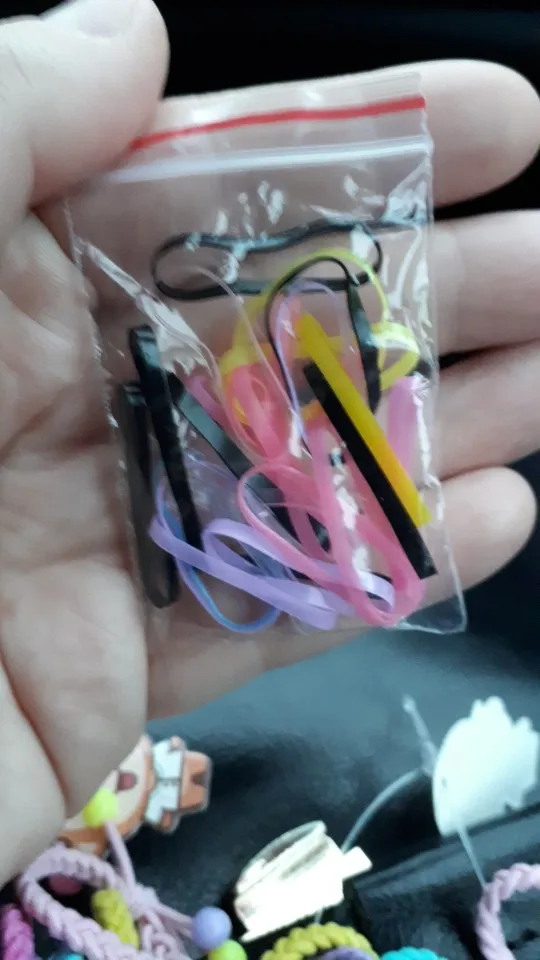 Резинки могут быть разного размера, например, фиолетовая одна больная, а вторая совсем мелкая. Одна была плохо заплетена, пришлось перевязывать. На годовалой дочке плохо держатся. Может, потом пригодится