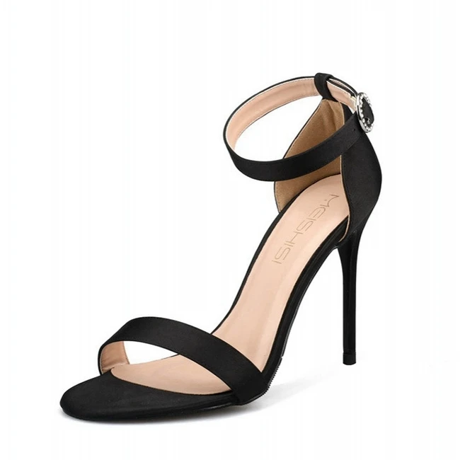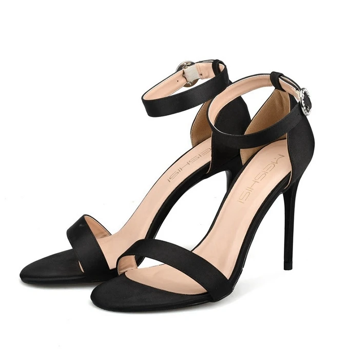 Шелковые босоножки красного и черного цвета; Однотонные женские босоножки на тонком каблуке с открытым носком; Летняя пикантная офисная обувь на высоком каблуке с пряжкой и ремешком; H0042