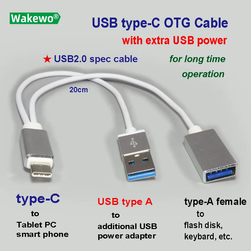Кабель USB-C, алюминиевый, технология OTG, с дополнительным кабелем питания, для смартфонов, планшетов, компьютеров