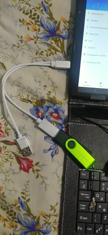 кабель нормальный,но одновременно с просмотром флешки зарядка не идет,да и отдельно зарядки нет,но флешку телефон видит и читает хорошо!