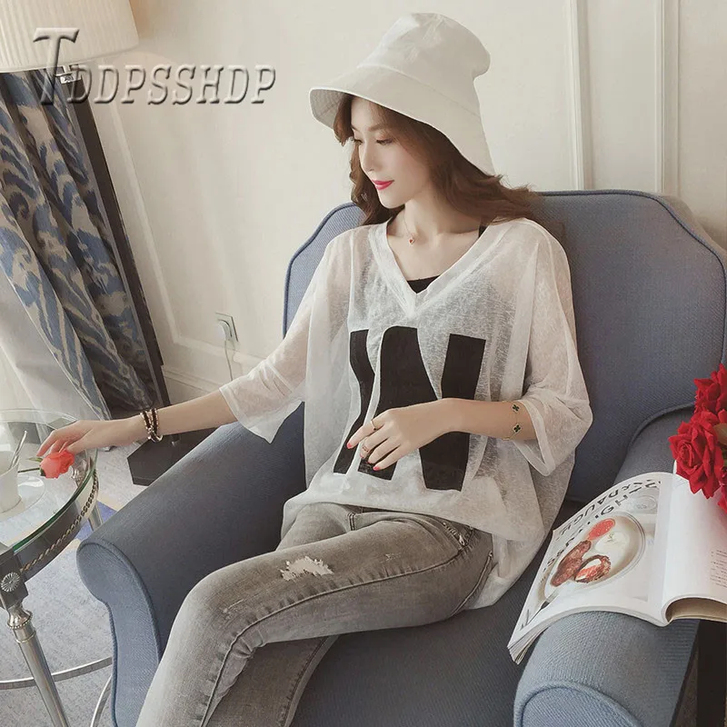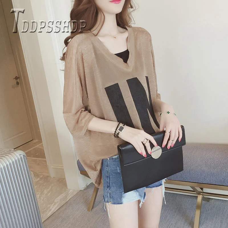 2019, размера плюс Летняя женская футболка с майкой, модные женские футболки с V-образным вырезом