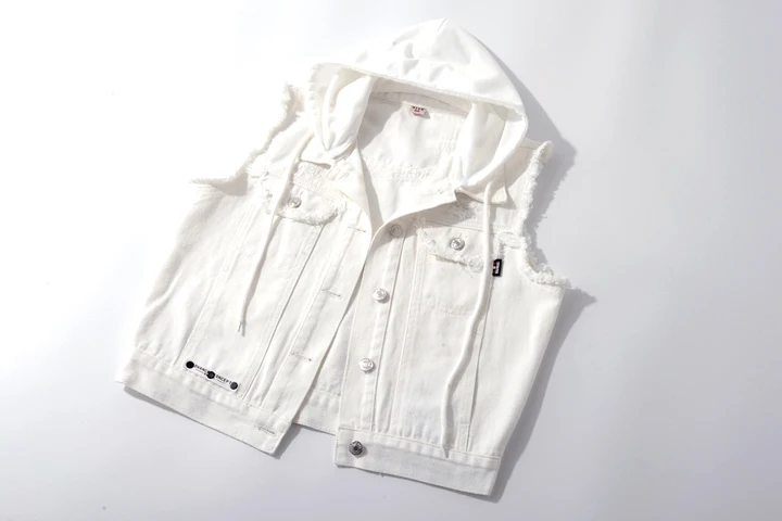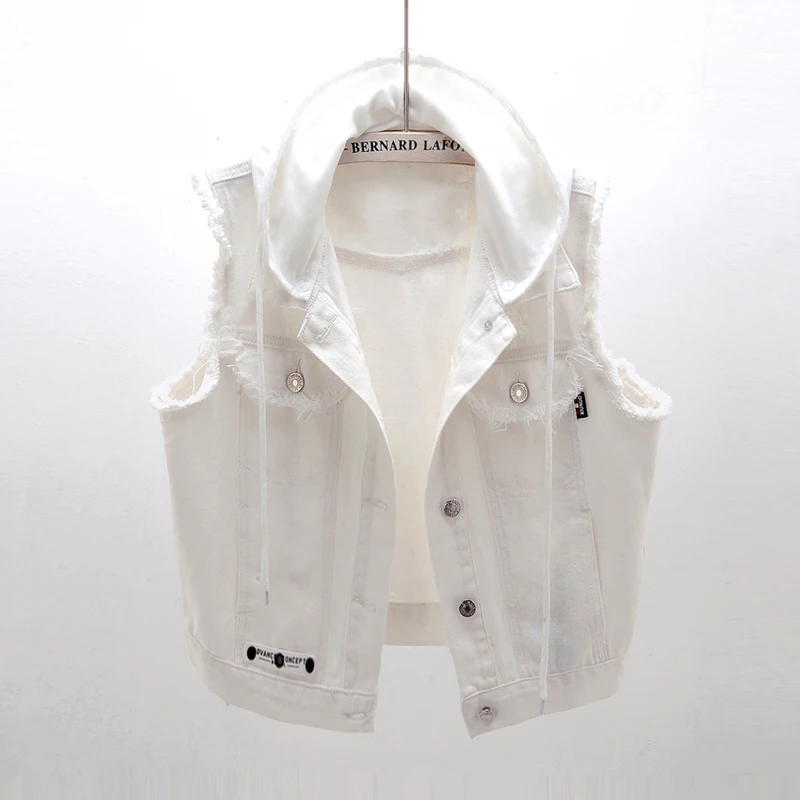 Джинсовая женская жилетка с капюшоном, повседневная Короткая Безрукавка из денима, однобортная куртка на осень