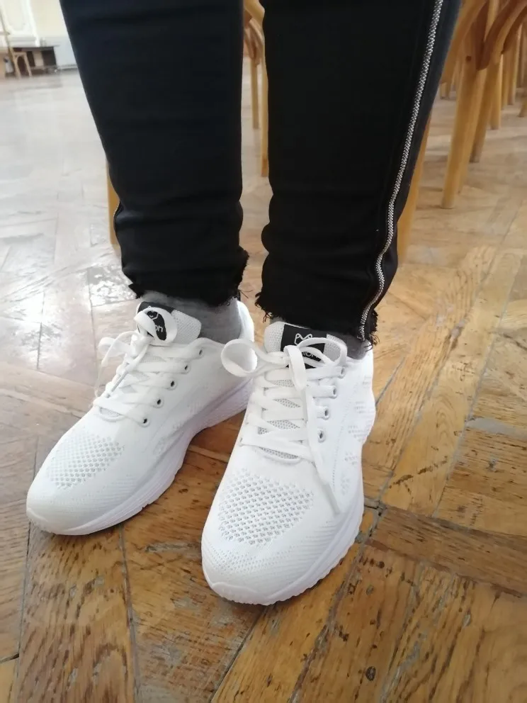 Кроссовки просто мега, такие лёгкие. Приехали за три недели, размер на свой 38, взяла 38 и они мне как раз. Полностью соответствуют фото. Имеют небольшой запах клея, но он выветрится. Спасибо продавцу
