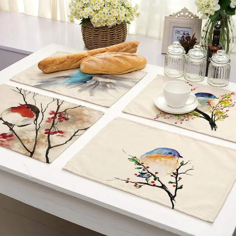 Коврик для обеденного стола из хлопка и льна, с рисунком птичьей ве...