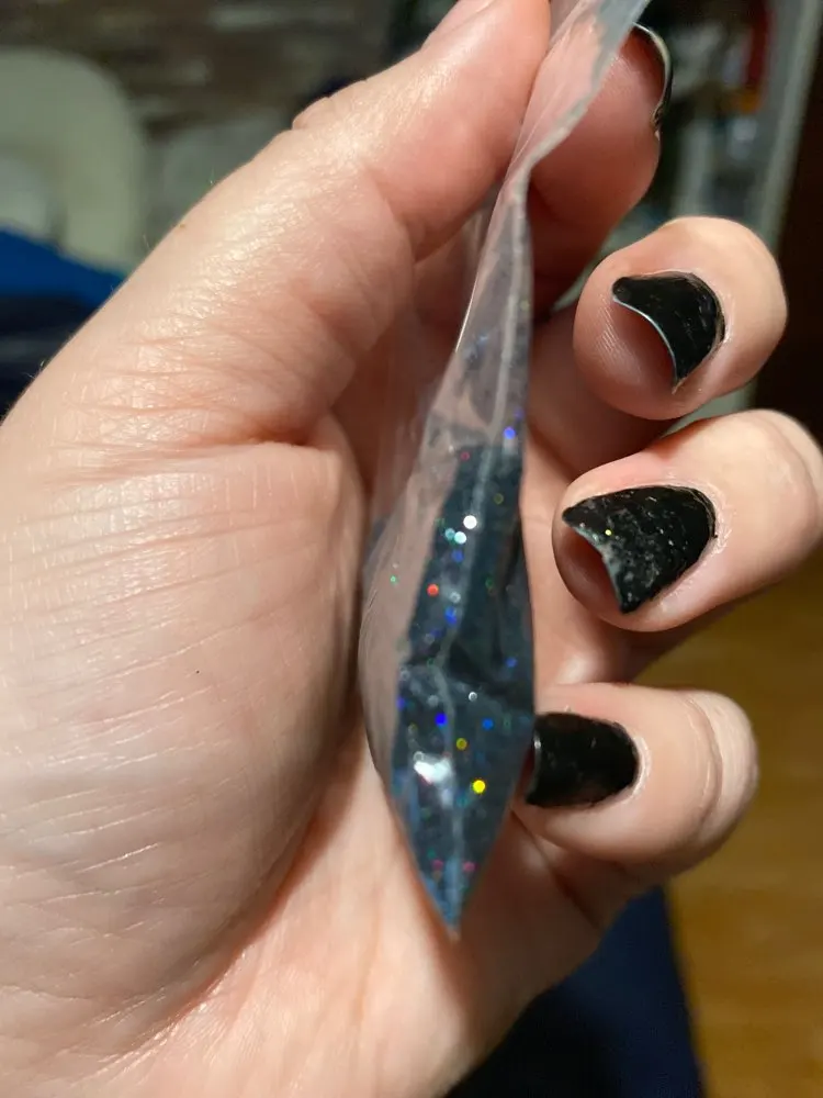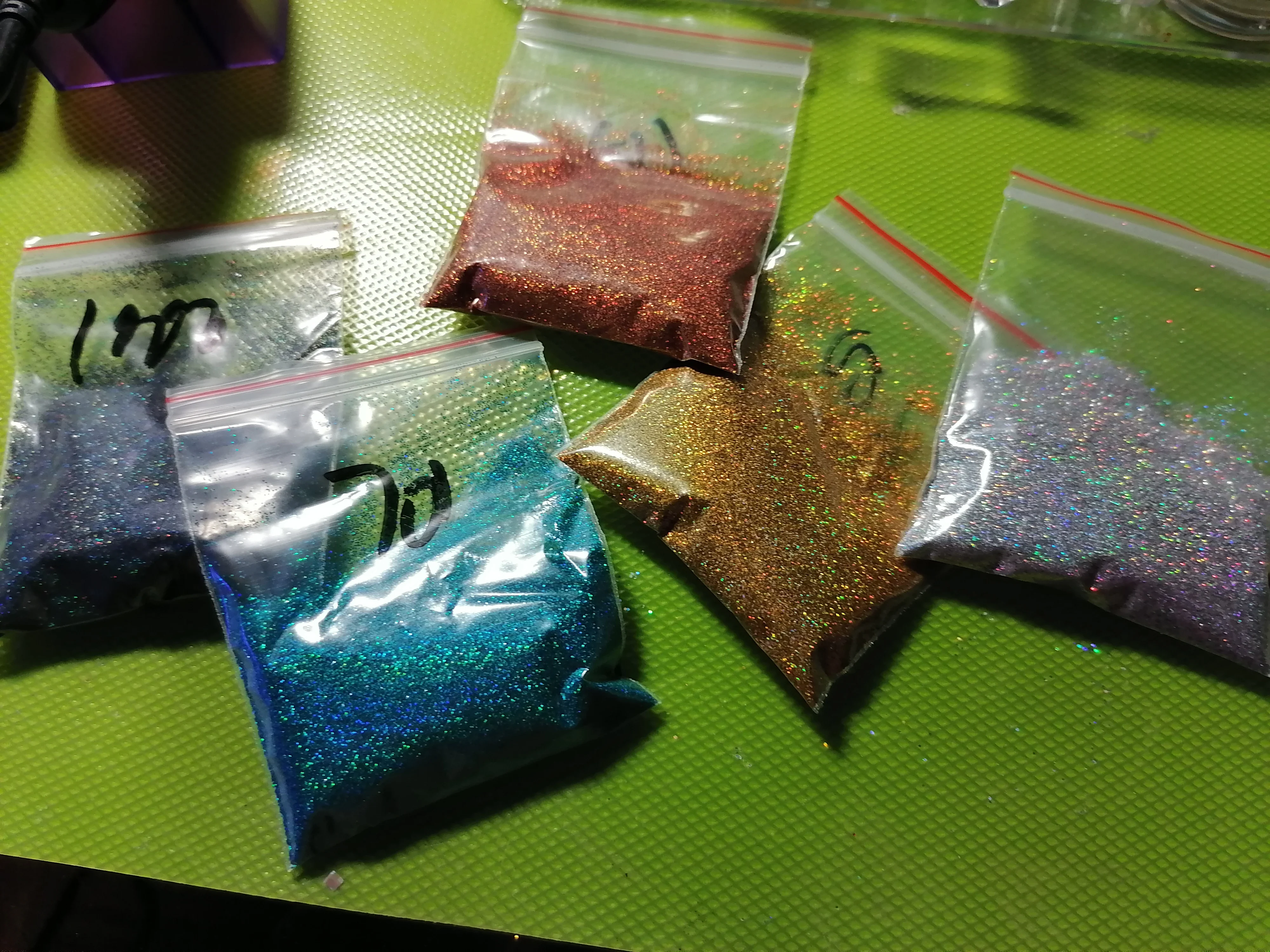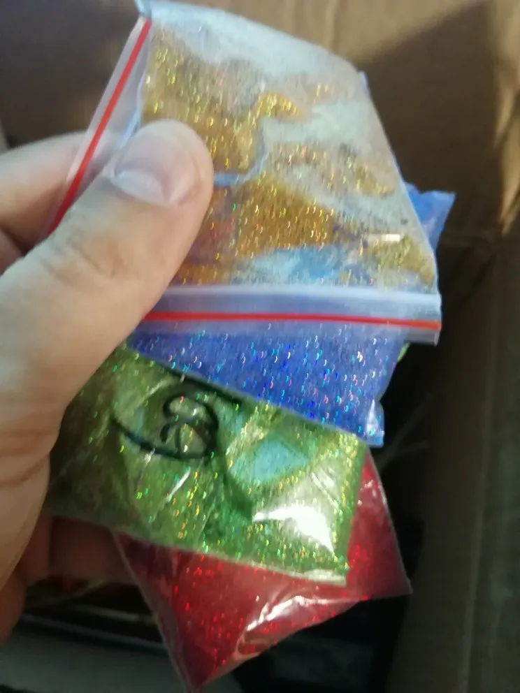Наполняемость точная. Ничего не просыпалось. Красивые с галографическим эффектом. Цвета в точности как на фото продавца. Теперь из работы- брала для замесов с гель-лаками. Если замешивать с базой, то все скатывается из-за того что база жирная. С топом- частички крупноватые это не пыль и получаются проплешины. Если добавлять в цвет, то получается красивый эффект, но все же хотелось именно мерцающего чистого без примесей блеска. Пробовала на топ без липкого слоя втереть как втирку-вот тут получилось очень ровно и красиво, только топ нужно сушить 10 сек, потом их вбить в топ и только потом втереть как втирку. 1 фото -с топом. 2 фото-замес с цветом. 3 фото- на цвет вторым слоем блестки с топом